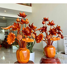 _ Bình hoa sen trang trí phòng thờ phòng khách ,phòng khách được làm bằng chất liệu gỗ mun đuôi công tự nhiên 100% _ kt bình cắm hoa 23×37cm + kt 25 hoa lá