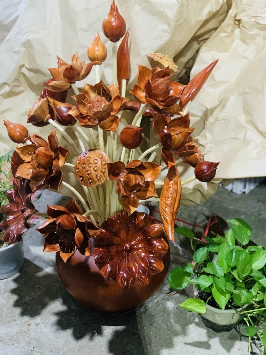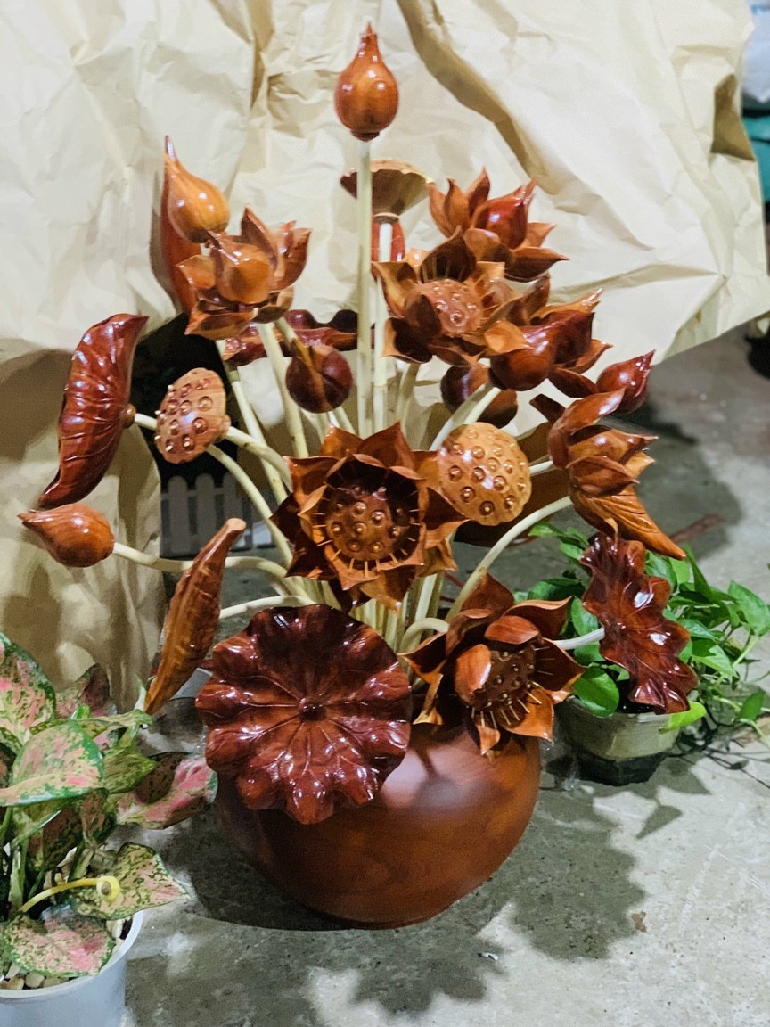✨1 bình hoa sen 25 cành , trang trí phòng thờ phòng khách bằng gỗ hương đỏ đẹp long lanh ,