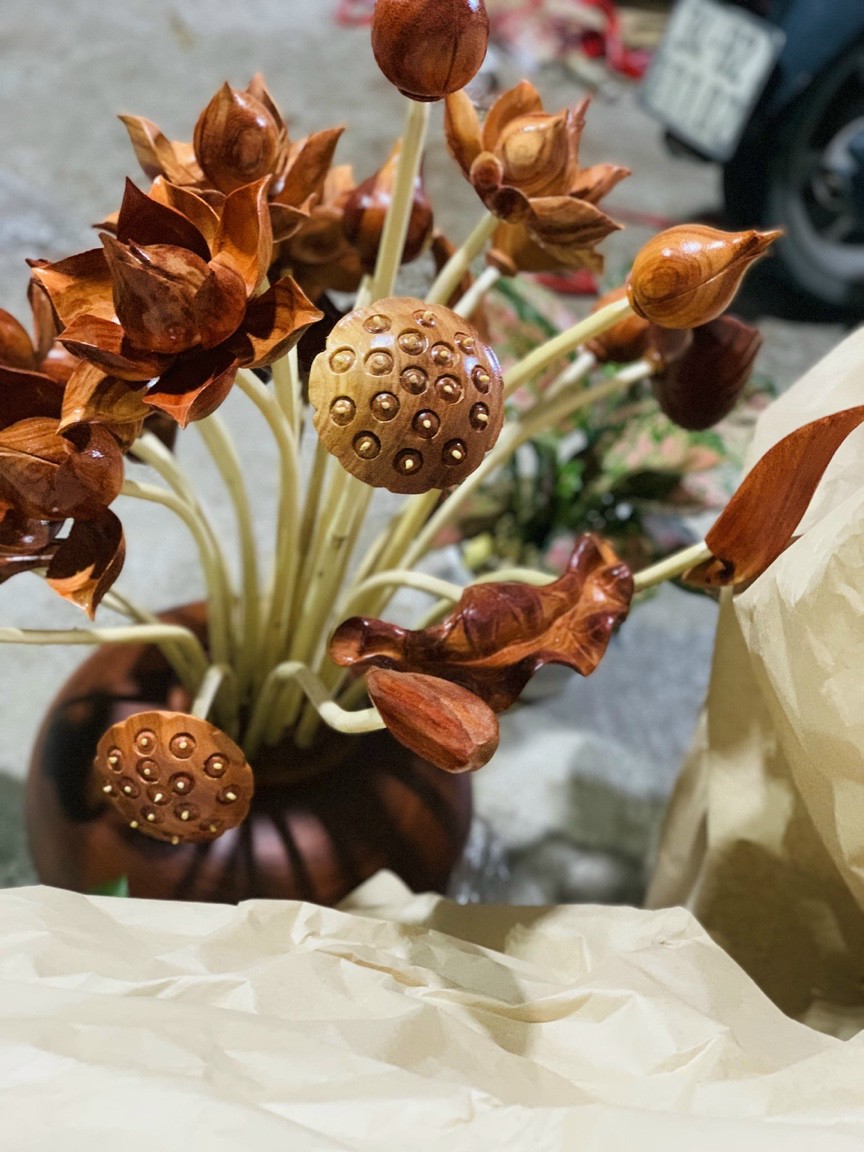 Lọ hoa sen để bàn 11 cành gỗ hương