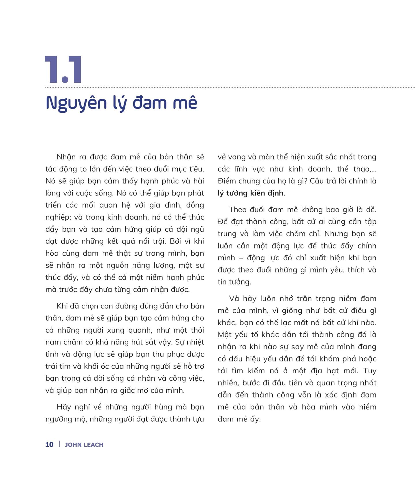 Thành công có một sức hút kỳ lạ. Ai ai cũng đều khát khao hai chữ “thành công”, bởi người thành công sẽ nhận được sự tôn trọng từ xã hội, trông họ mãn nguyện và thường nổi bật hơn những người khác. Hai chữ ấy được định nghĩa ra sao là tùy ở mỗi người, nhưng chắc chắn bạn sẽ rất khó thành công nếu chưa tìm được định nghĩa cho riêng mình. Khi định nghĩa, chúng ta cần thẳng thắn nhìn nhận thực tế, nếu không thì nhiều khả năng sẽ đi vào những vết xe đổ dẫn tới thất bại. Thành công không đi đôi với tiền, mặc dù những người thành công thường giàu có thật đấy, nhưng cũng không ít người giàu còn xa mới được gọi là thành công. Thành công cũng không được định nghĩa bằng “hạnh phúc”, mặc dù hai yếu tố này liên quan chặt chẽ với nhau. Bạn sẽ cần rất nhiều thời gian để suy nghĩ thấu đáo về định nghĩa thành công, và cuốn sách này được viết ra để hỗ trợ bạn trong quá trình tìm hiểu ấy. Người ta đã thực hiện nghiên cứu về những yếu tố quan trọng mang lại thành công trong những lĩnh vực khác nhau. Một cầu thủ thành công cần những kỹ năng khác với một diễn viên thành công, một doanh nhân thành công hay một nhà báo thành công. Nhưng điều đáng chú ý là họ đều cần tập hợp những tố chất để trở nên khác biệt. Những tố chất ấy, tác giả John Leach gọi là “10 bước đến thành công”, và sẽ giới thiệu cặn kẽ đến bạn qua cuốn sách cùng tên này. Hãy hiểu cho rõ rằng việc này không hề dễ dàng, và chắc chắn không thể giúp bạn giải quyết các vấn đề trong cuộc sống một cách nhanh chóng. Con đường dẫn tới thành công không có lối tắt. Đó là lý do vì sao thành công thường được ví như một phần thưởng. Thành công tùy thuộc vào tư duy và cách nhìn nhận của bạn – thứ sẽ kiểm soát cách bạn ứng xử và tương tác với những người xung quanh. Cuốn sách “10 bước đến thành công” sẽ giúp bạn phát triển lối tư duy chiến thắng và hướng dẫn bạn vận dụng nó trong suốt hành trình chạm đến vinh quang. Nếu không có nhận thức và góc nhìn đúng đắn, hành trình của bạn sẽ đầy gian nan, và bất cứ rào cản nào cũng có thể trở thành chướng ngại khó vượt qua. Chuẩn bị tinh thần sẵn sàng đón nhận mọi khó khăn sẽ giúp bạn dễ dàng vượt qua thử thách hơn nhiều trên con đường mình chọn.