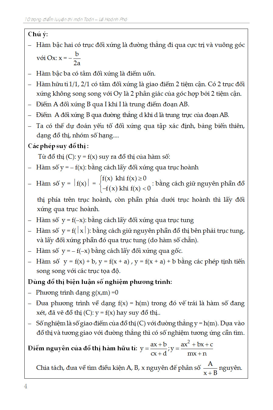 10 Trọng Điểm Luyện Thi THPT Quốc Gia Môn Toán là một trong những cuốn mới nhất của thạc sĩ Lê Hoành Phò được biên soạn theo cấu trúc mới nhất, bám sát đề thi Đại Học