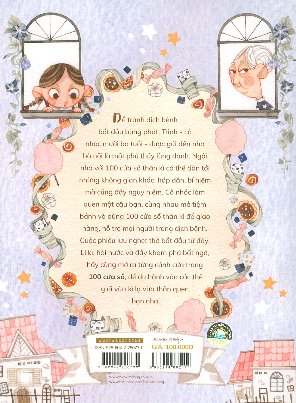 Mua tại TiktokĐể tránh dịch bệnh bắt đầu bùng phát, Trinh – cô nhóc mười ba tuổi - được gửi đến nhà bà nội là một phù thủy lừng danh. Ngôi nhà với 100 cửa sổ thần kì có thể dẫn tới những không gian khác, hấp dẫn, bí hiểm mà cũng đầy nguy hiểm. Cô nhóc làm quen một cậu bạn, cùng nhau mở tiệm bánh và dùng 100 cửa sổ thần kì để giao hàng, hỗ trợ mọi người trong dịch bệnh. Cuộc phiêu lưu nghẹt thở bắt đầu từ đây. Li kì, hài hước và đầy khám phá bất ngờ, hãy cùng mở ra từng cánh cửa trong 100 cửa sổ, để du hành vào các thế giới vừa kì lạ vừa thân quen, bạn nha!