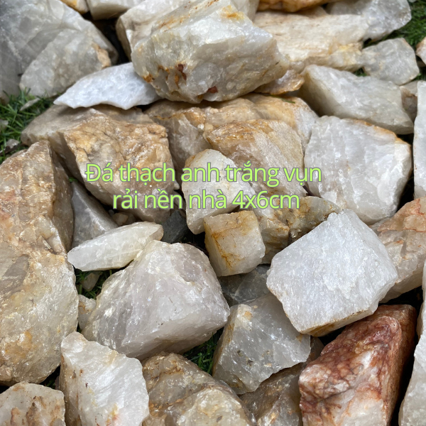 Đá thạch anh vụn trắng cỡ 4x6cm được các chuyên gia phong thủy và gia chủ dùng để rải sàn, chôn móng nhà ở, cơ sở kinh doanh, nhà xưởng để trấn trạch nâng cao