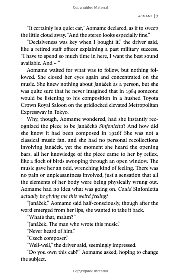 In this world, the fates of two people, Tengo and Aomame, are closely intertwined. They are each, in their own way, doing something very dangerous. And in this world, there seems no way to save them both.