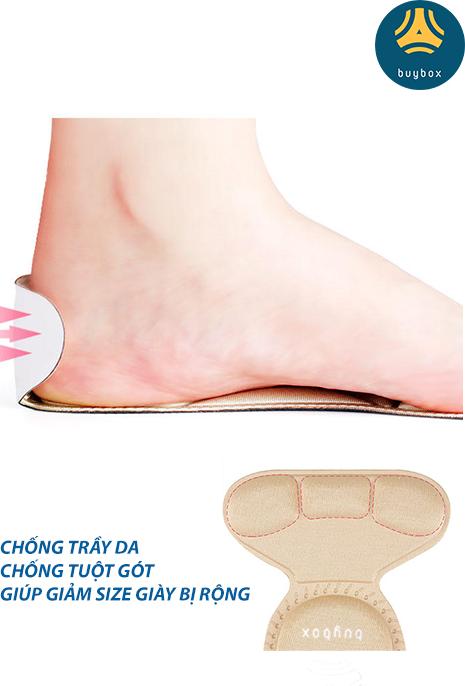 CÔNG DỤNG NỔI BẬC Lót giày đa năng chống rộng buybox là sự kết hợp giữa lót giày và lót chống trầy gót chân. Giúp chống rộng giày, giảm size.