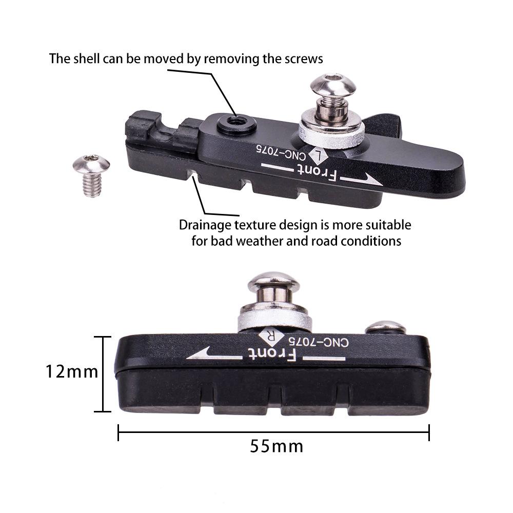 This bicycle brake pad can effectively solve the problem of brake wear, timely replacement, can enhance riding safety, installation is quick and convenient. Features: Brake accessories, can effectively solve the problem of brake wear, timely replacement, increase riding safety. Fine quality rubber with aluminum support, high friction, solid and reliable support. Drainage texture design is more suitable for bad weather and road conditions. The installation is simple and convenient, suitable for different kinds of C brake. Multi color options, you can choose according to preferences and the appropriate color with the bike.