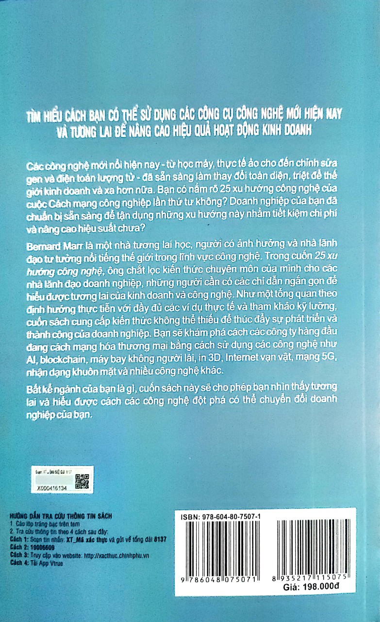 Nhà tương lai học nổi ttiếngbernard marr đđã viết một hướng dẫn không thể bỏ lỡ về 25 công nghệ tạo nên cuộc cách mạng công nghiệp lần thứ tư ốn sách độc đáo này cung cấp cho các nhà lãnh đạo doanh nghiệp những dẫn nhập ngắn gọn dễ hiểu về các công cụ mới nổi sẵn sàng phá vỡ thậm chí có thể tái tạo lại ,kinh doanh như chúng ta đã biết đề cập mọi thứ từ cấu hình cao đến các công nghệ ít được biết đến hơn nhưng không thể không nhắc tới điện toán lượng tử bản sao số xử lý tự nhiên. rất thích hợp cho các chuyên gia luôn bận rộn ốn sách 25 xu hướng công nghệ cung cấp khái niệm sơ lược về mỗi công nghệ trước khi đi sâu