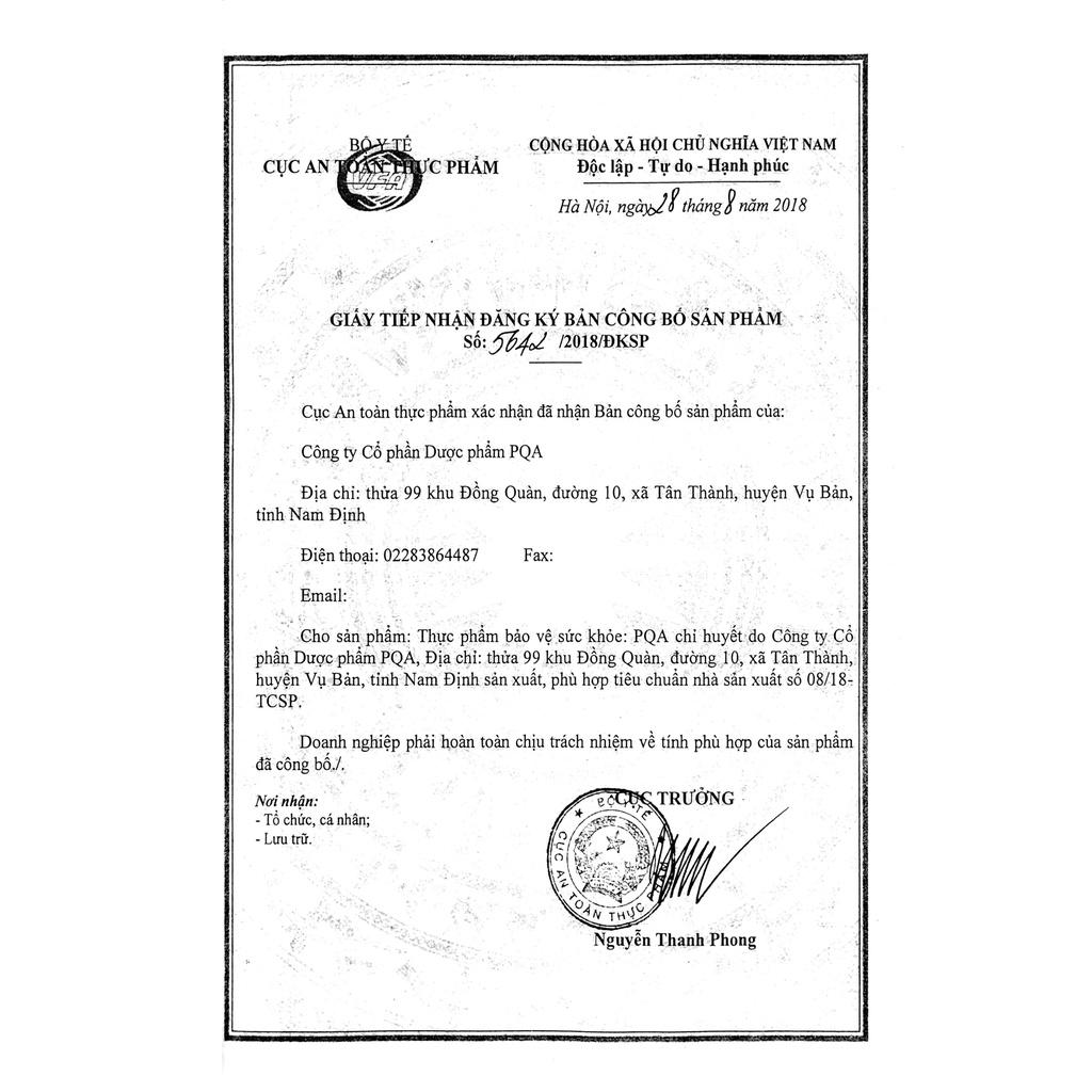 Chỉ Huyết PQA Thành Phần Từ Thiên Nhiên Hỗ Trợ Thanh Nhiệt, Cầm Máu Và Hạn Chế Xuất Huyết Hộp 250ml THÔNG TIN SẢN PHẨM: - Xuất xứ: Việt Nam - Dung tích: Hộp 250ml