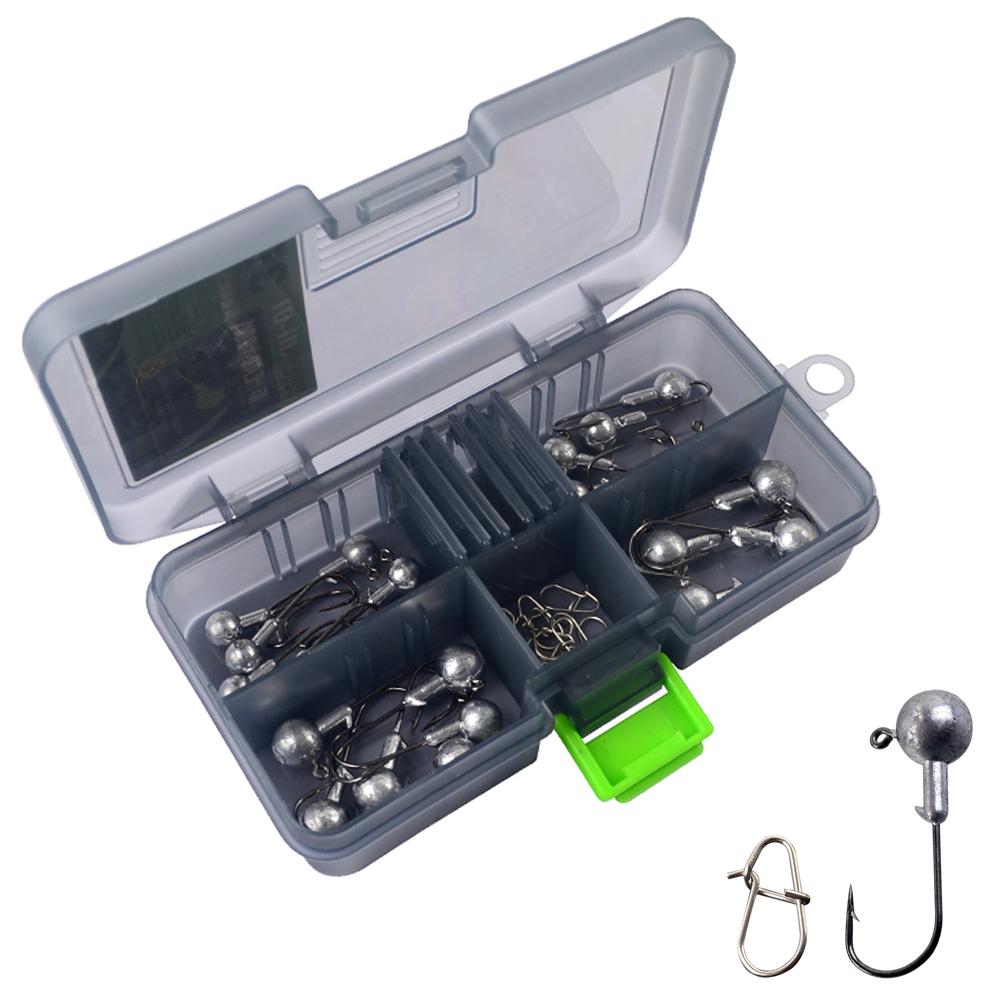 Features: High carbon steel jig, sharp hook for better penetration, solid and durable. Rigging with most soft worm and grub lures, keep soft lure in right position. Weighted rounded head designed for a fast drop