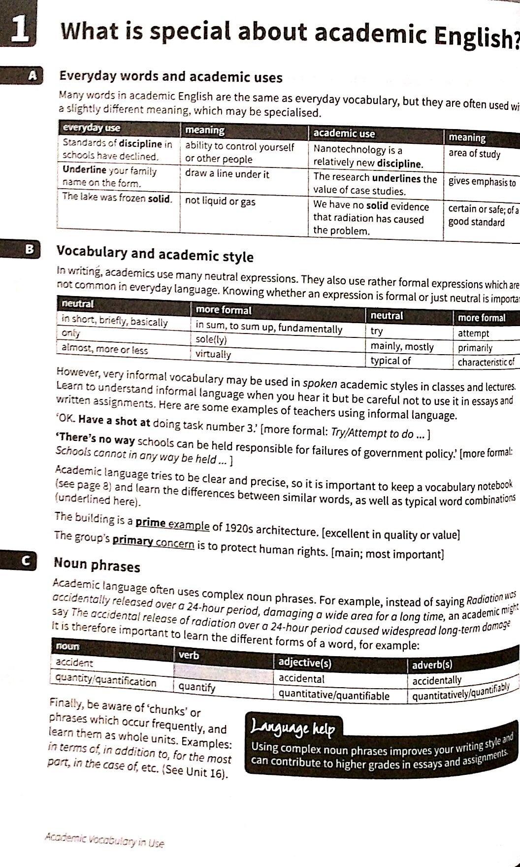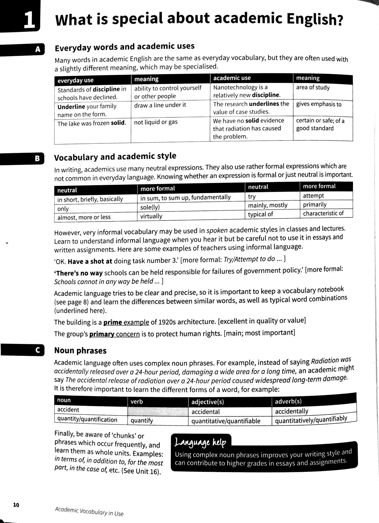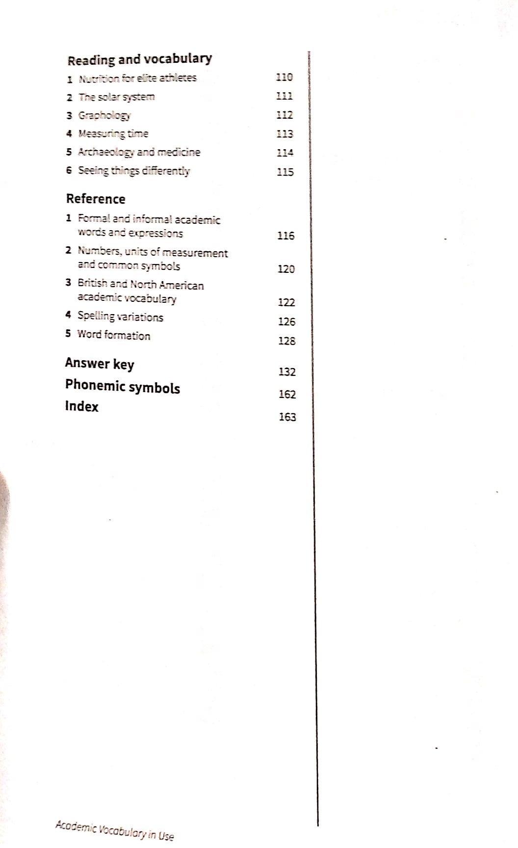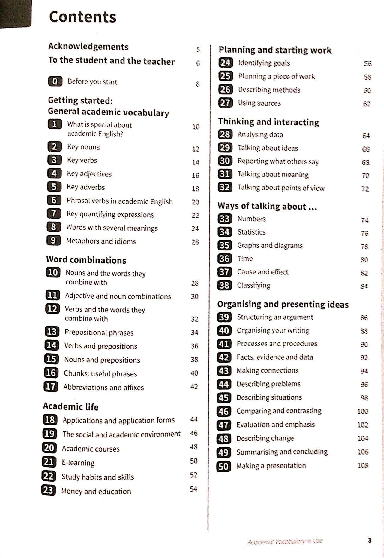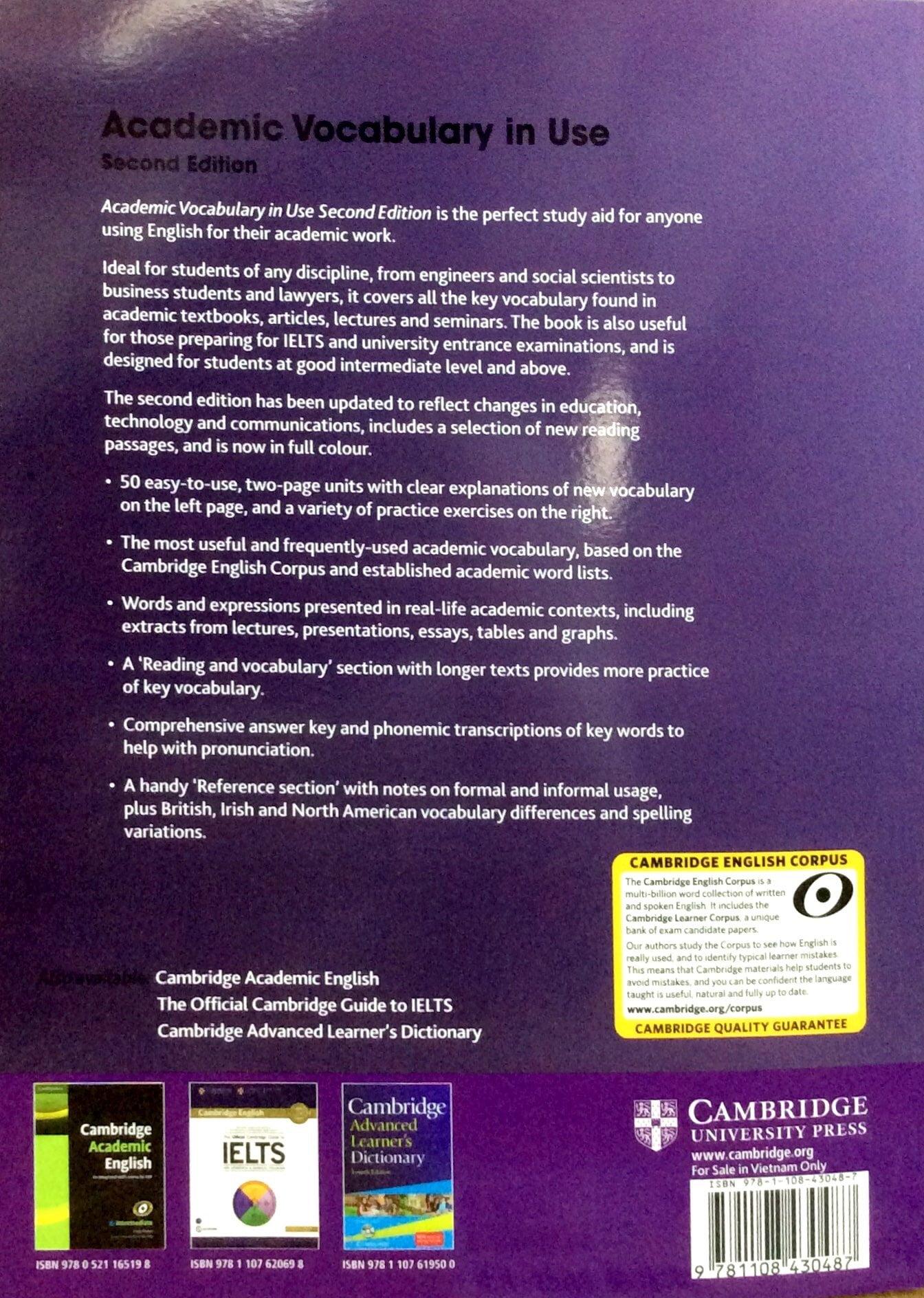 Academic Vocabulary in Use Second Edition is the perfect study aid for anyone using English for their academic work. Ideal for students of any discipline, this second edition has been updated to reflect changes in education, technology and communications, includes a selection of new reading passages, and is now in full colour. 50 easy-to-use, two-page units give clear explanations of new vocabulary, along with a variety of practice exercises. A comprehensive answer key, and phonemic transcriptions to help with pronunciation, make it perfect for self-study as well as for use in the classroom. This book is designed for students at good intermediate level and above, and is also useful for those preparing for IELTS and university entrance examinations .