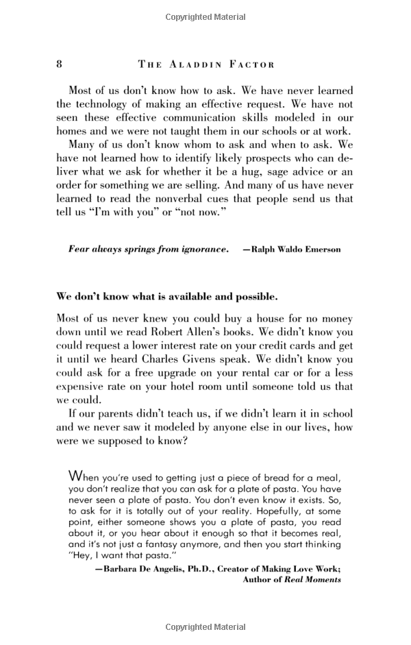 The Aladdin Factor: How To Ask For What You Want - And Get It The Aladdin factor - the ability to get what we want by having the confidence to ask for what we want