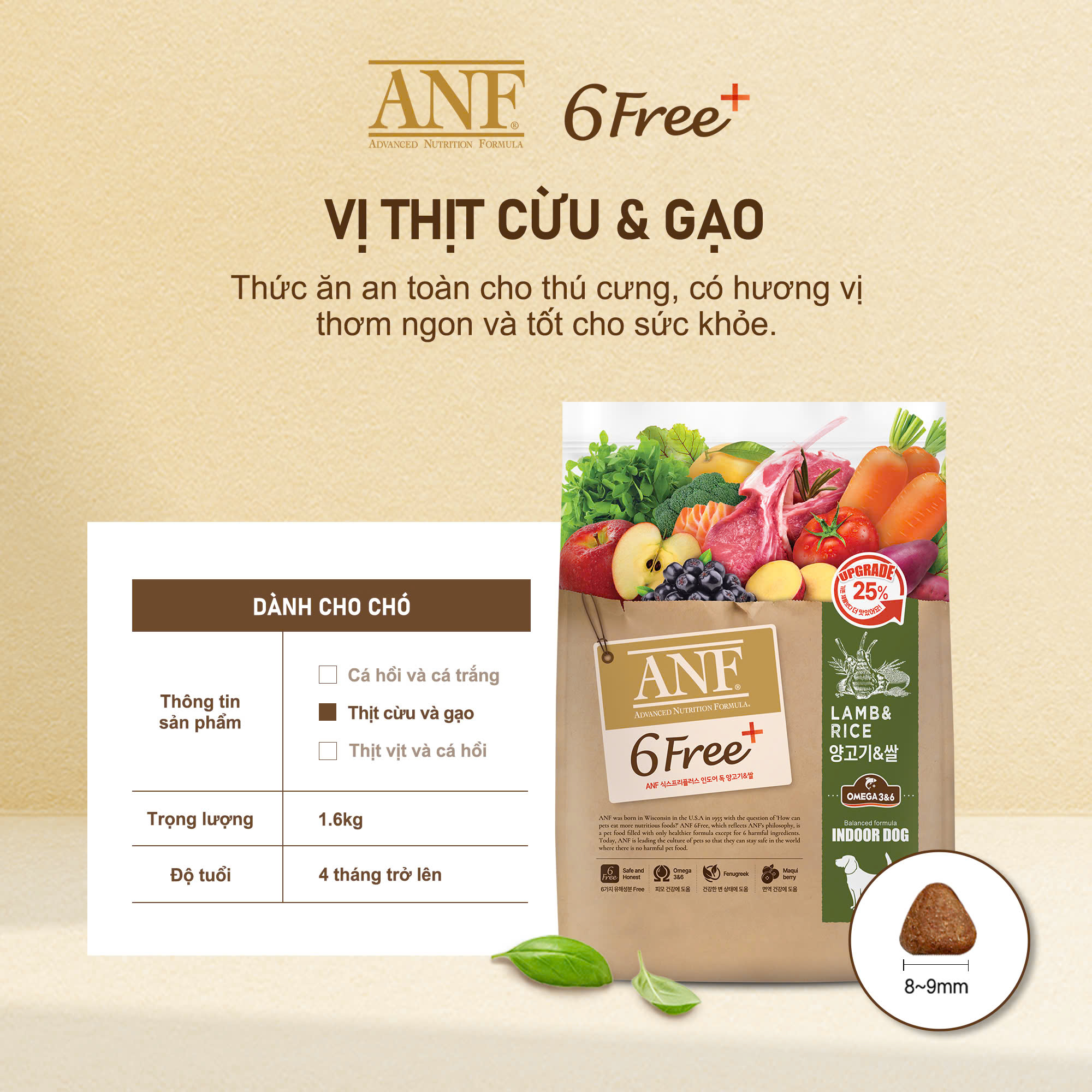 ✨ANF 6Free+ thức ăn cao cấp dành cho chó - Vị CỪU & GẠO 1.6Kg