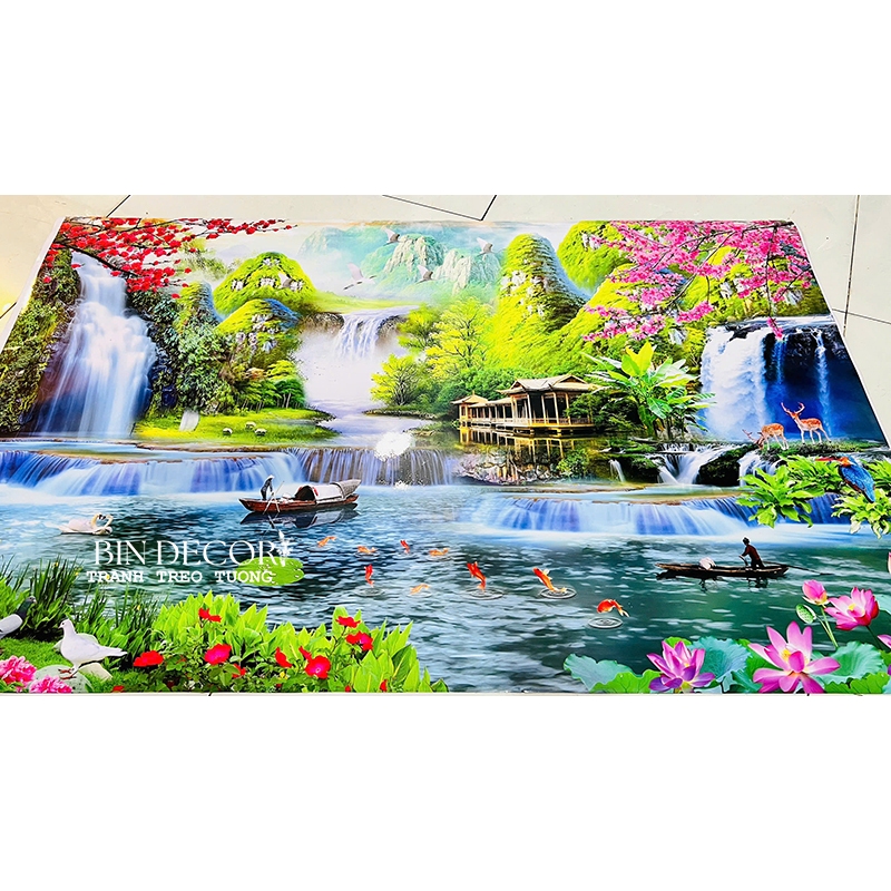 Tranh dán tường 3D sơn thuỷ hữu tình khổ lớn đẹp xuất sắc