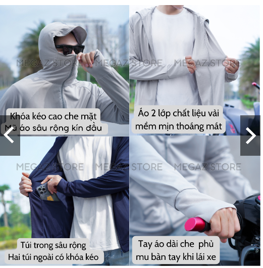 - Áo có 2 mẫu 1 lớp và 2 lớp cực kì dày dặn, mặc mát lạnh, chống nắng, chống tia UV tuyệt đối, thích hợp cho người chạy xe, làm việc nhiều ngoài trời nắng - Áo Chống Nắng thiết kế cải tiến mới nhất 2024, với phần khóa kéo cao che mặt thay thế được cho khẩu trang.
