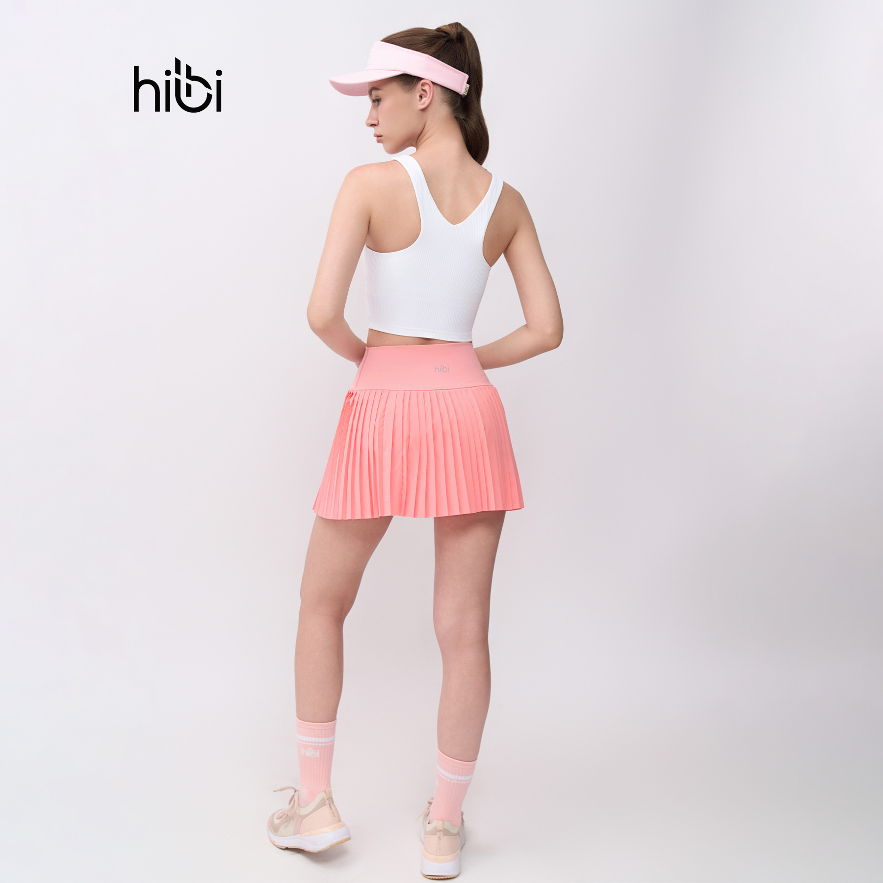 Tự tin toả sáng trên sân tập bằng thiết kế giao hoà giữa vẻ đẹp cổ điển của áo croptop cổ vuông hồng nhẹ nhàng và sự hiện. đại của chân váy xếp ly cạp