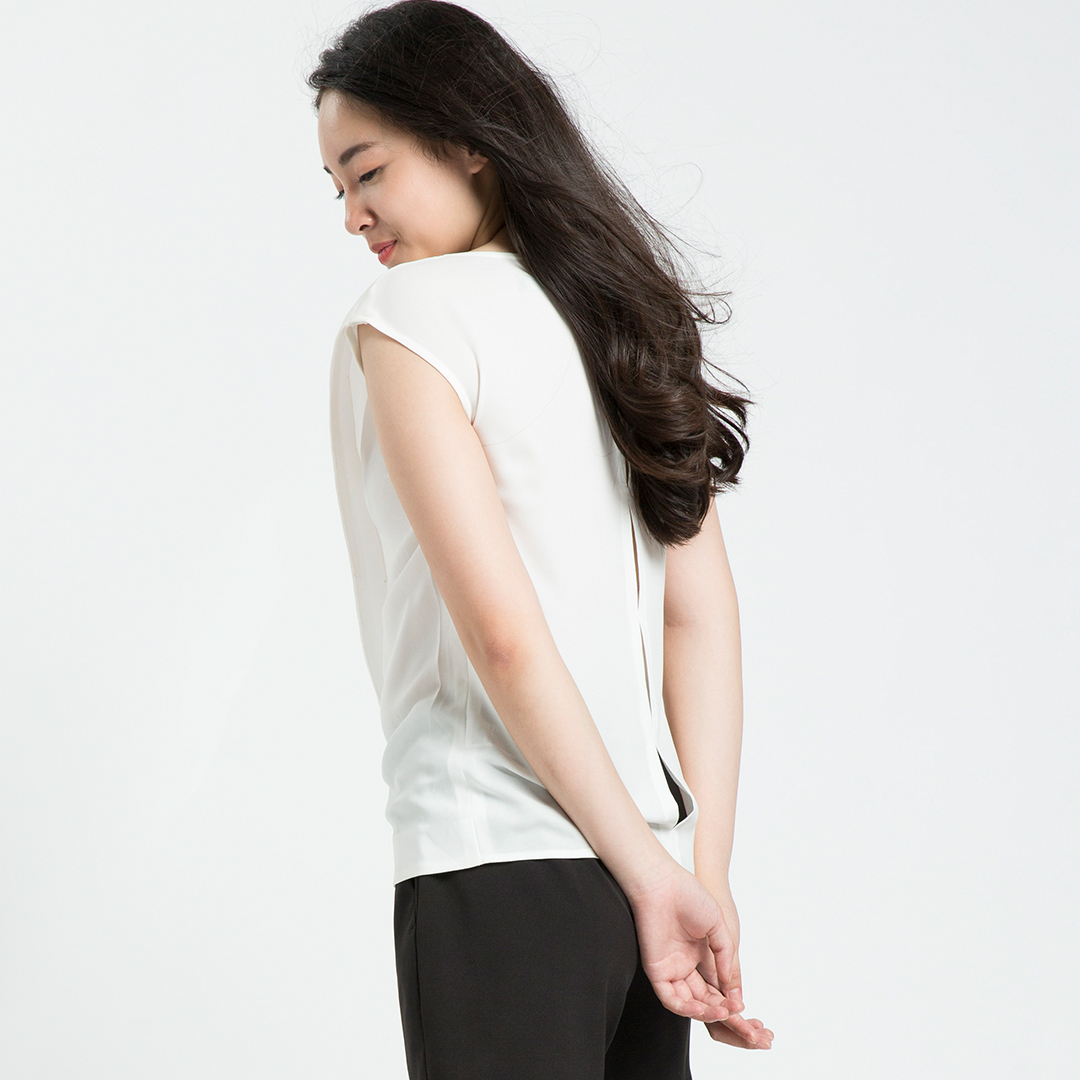Áo kiểu dáng suông Không tay Cổ cao viền bèo, ruy băng gân viền thắt nơ cổ Cài bằng nút phía sau Chất liệu chính: Polyester Ruy băng gân Polyester Cắt may thủ công tinh