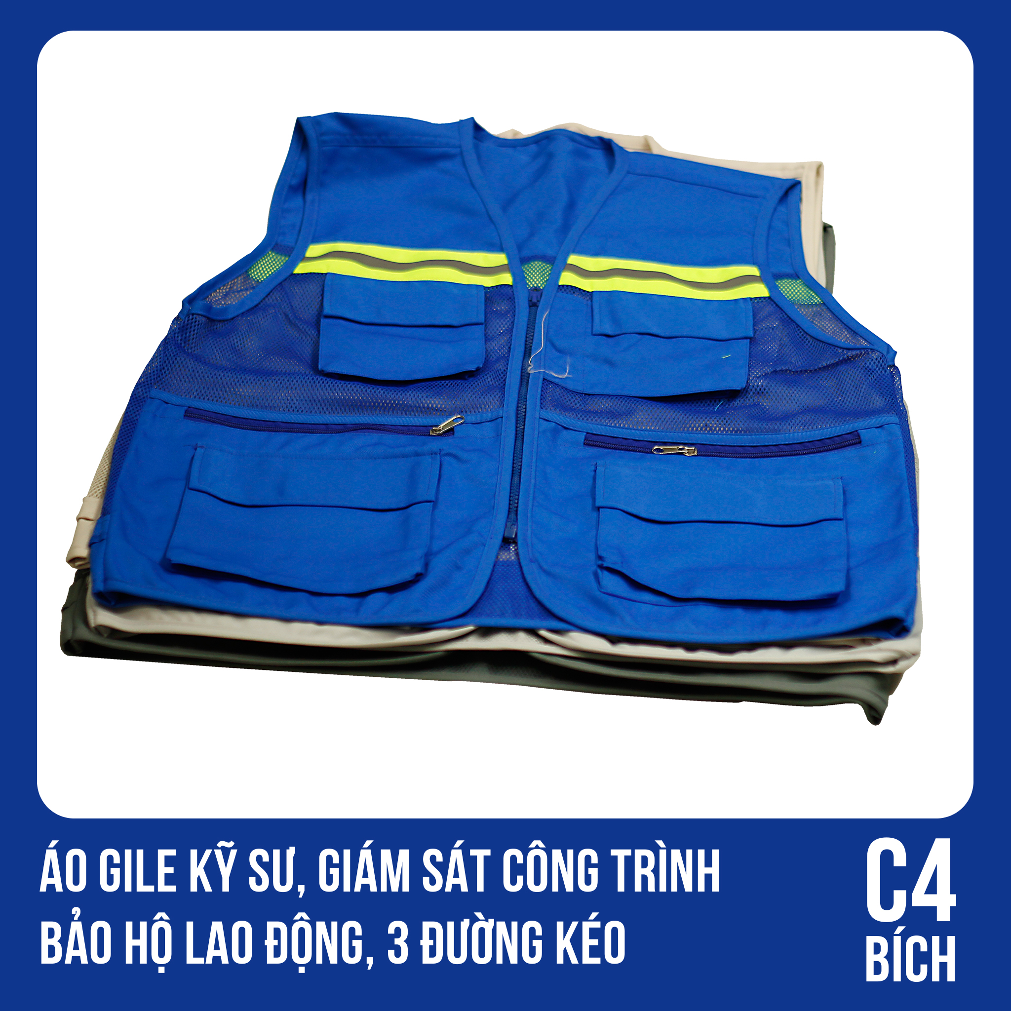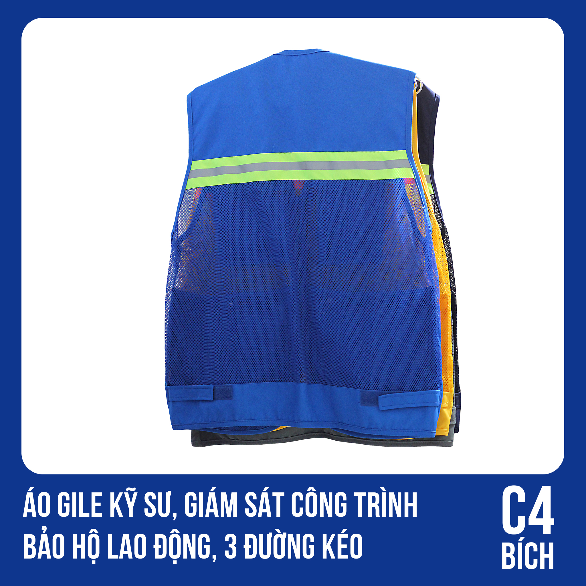 Áo gile kỹ sư bảo hộ 3 dây kéo phản quang hàng sẵn – Đặt mua nhanh chóng tại Vĩnh Phát