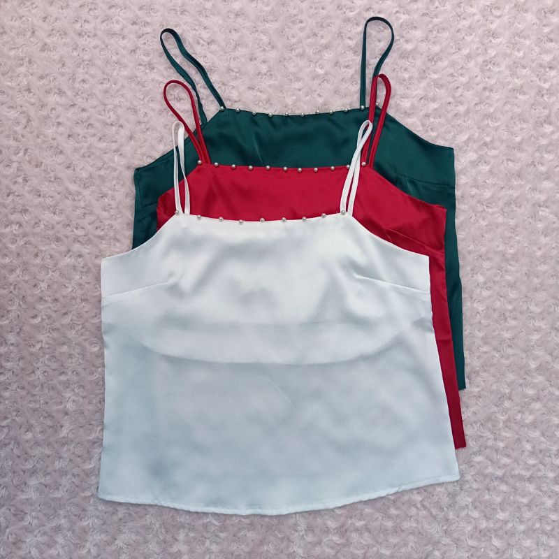 Áo 2 Dây Nữ - Áo 2 Dây Lụa Satin Quai Đính Ngọc Trai