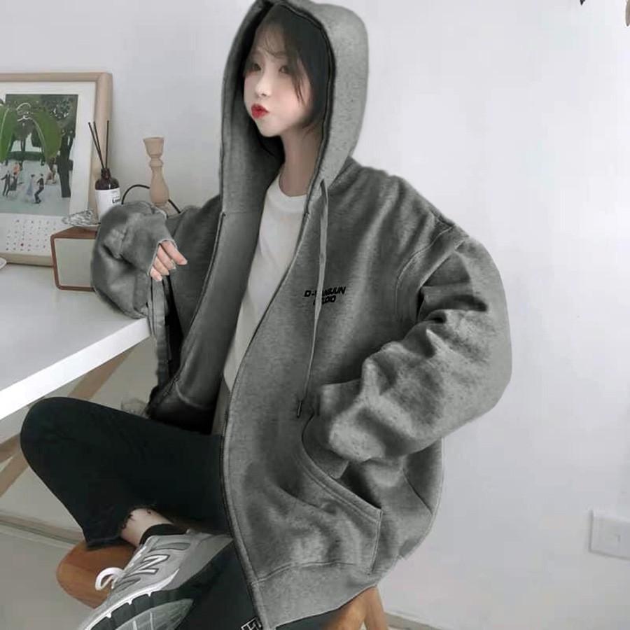 Áo khoác nữ form rộng có mũ TABISHOP áo hoodie zip nỉ bông trơn màu xám phong cách ulzzang unisex