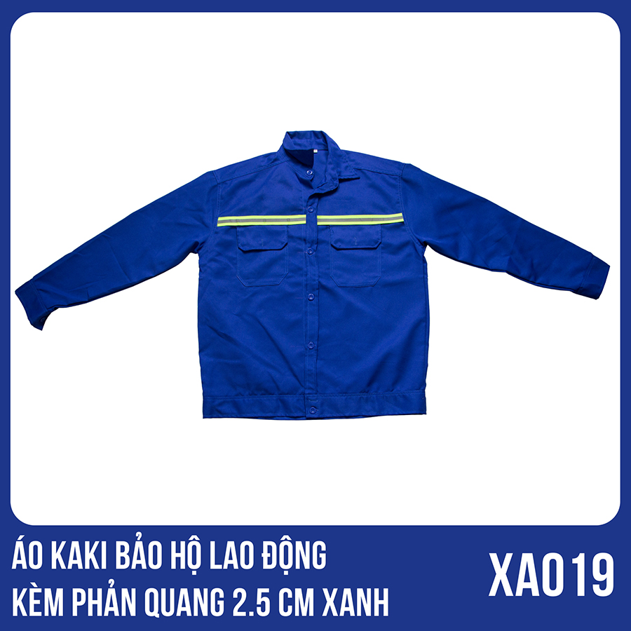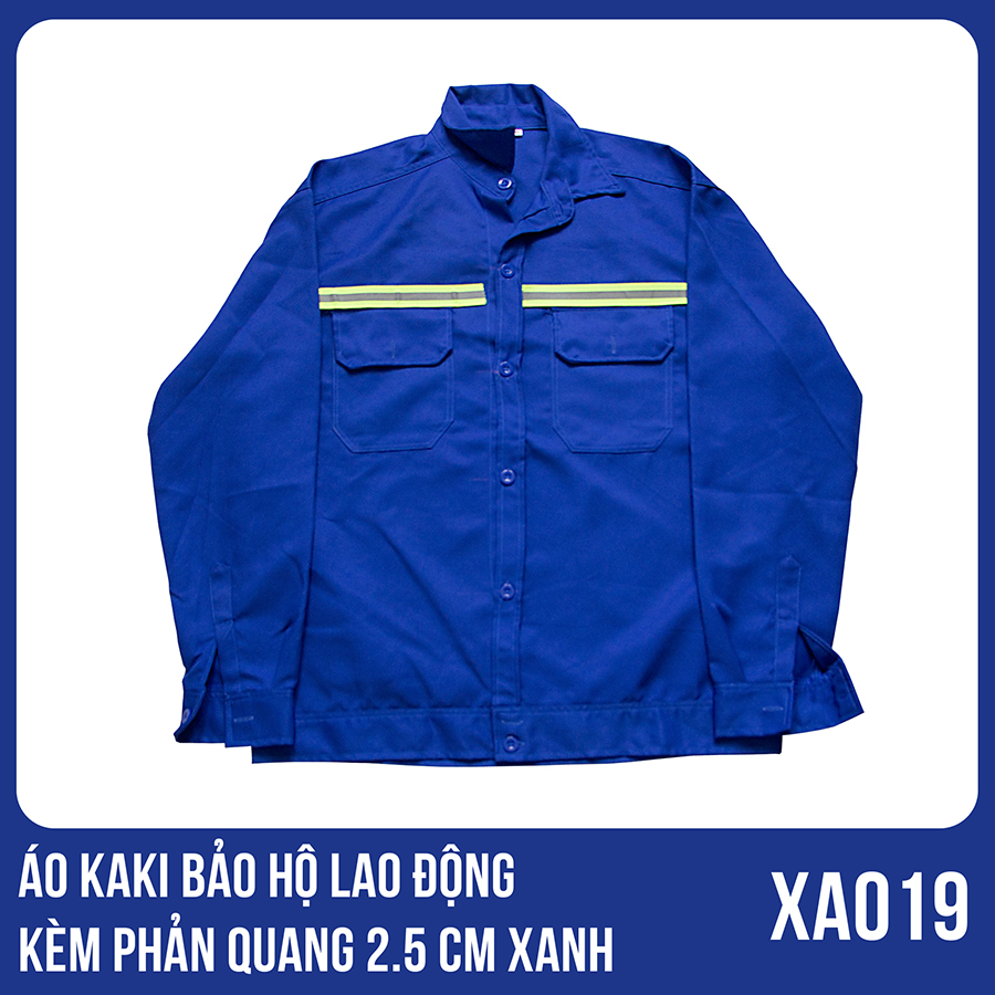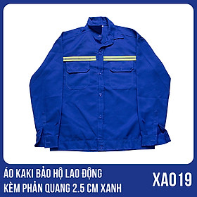 ✨Áo kaki bảo hộ lao động kèm phản quang 2.5 CM màu xanh - XA0019