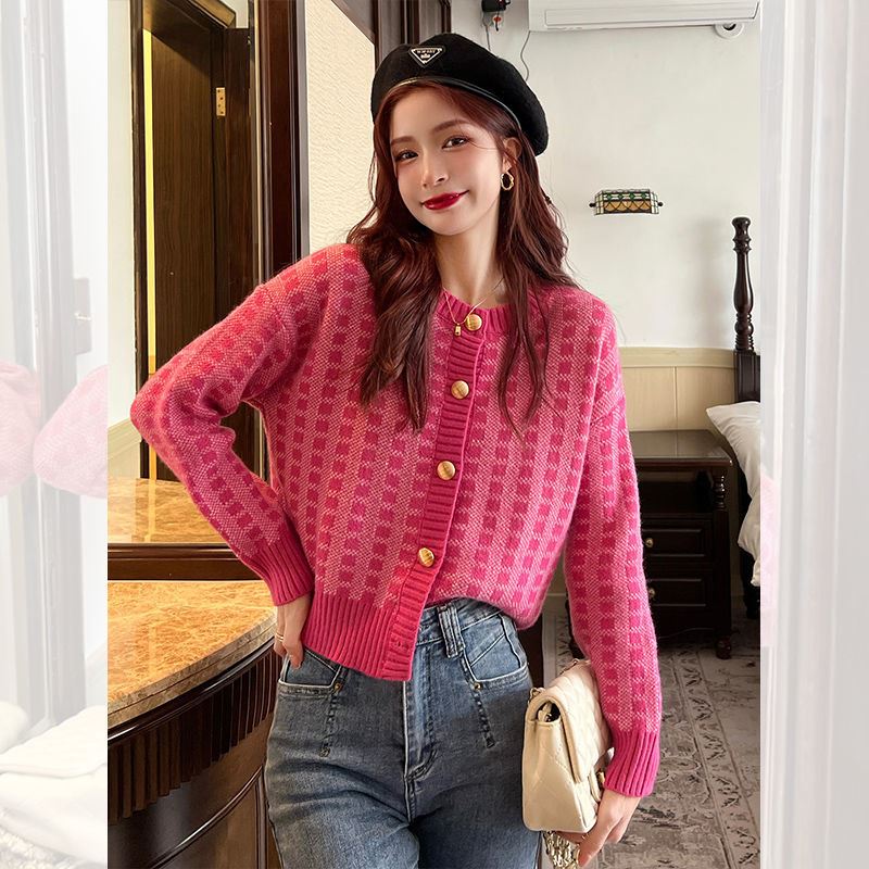 ✨Áo khoác cardigan dài tay cổ tròn họa tiết ca rô phong cách Hàn Quốc dành cho nữ Haint Boutique Ak13