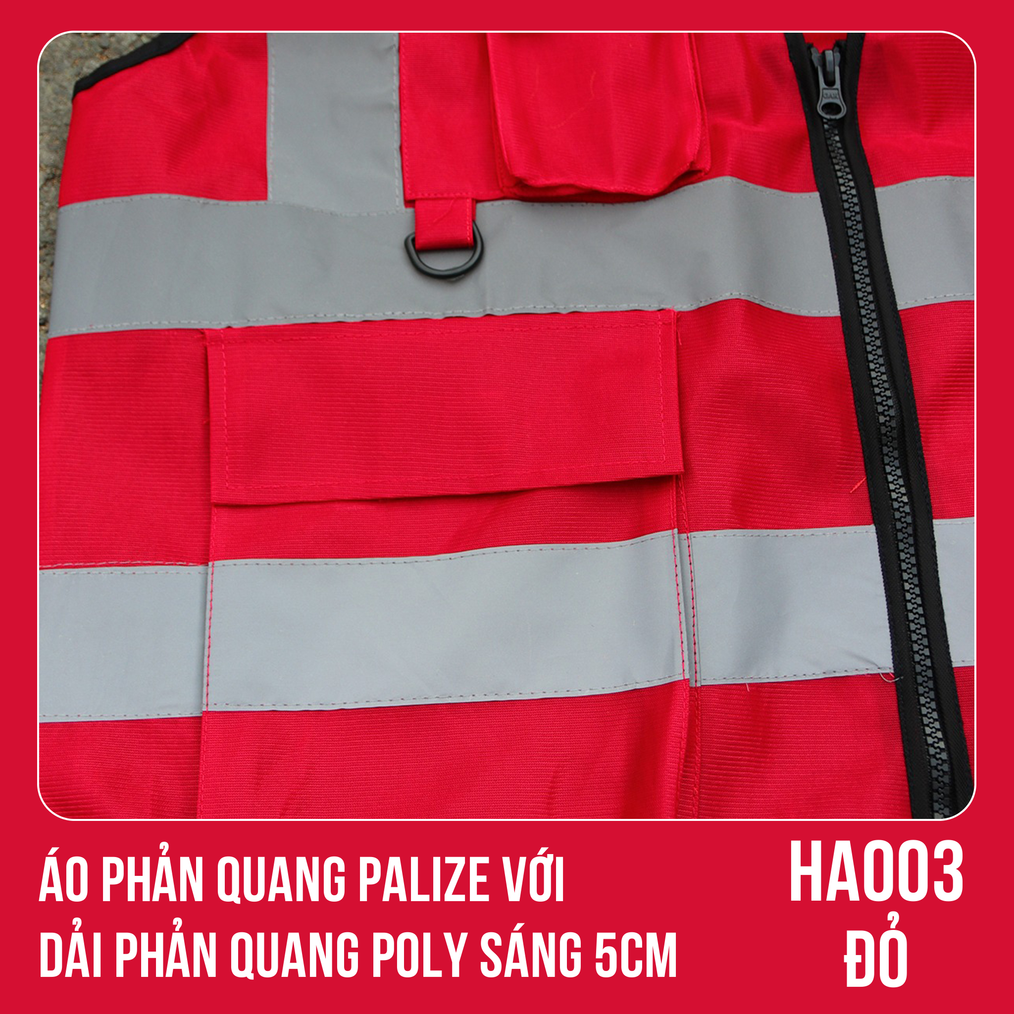 ✨Áo phản quang Palize với dải Phản quang Poly sáng 5cm màu ĐỎ - Mã HA003