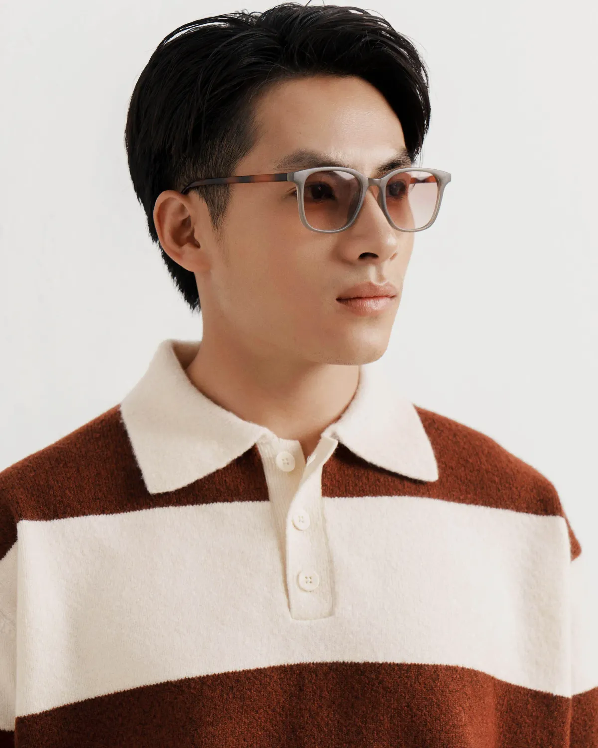Áo thun Polo sọc ngang gân nổi trên nền vải melange, cổ bo jacguard mắt nhỏ - Kiểu dệt sọc mới tạo hiệu ứng gân nổi đặc sắc - 6 gam màu trung tính -