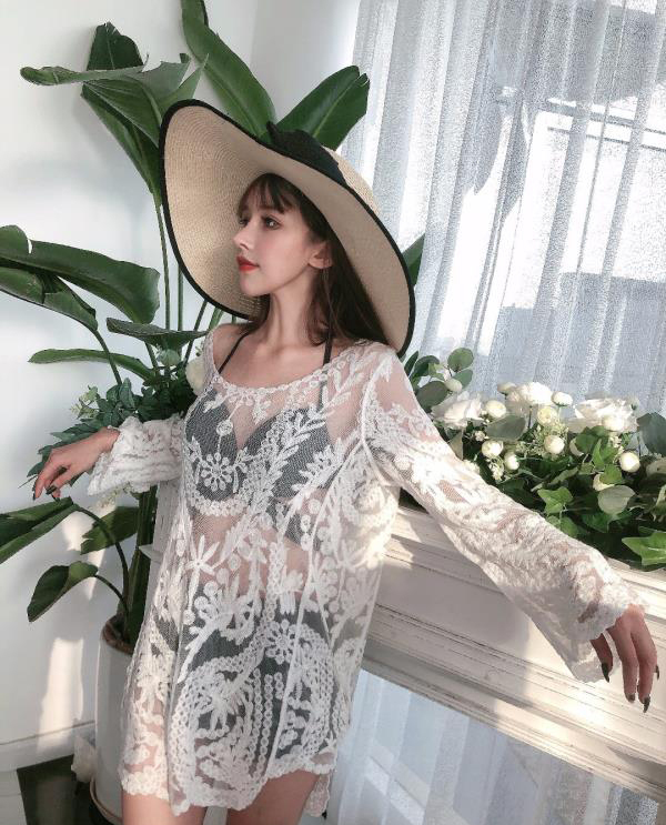 Mua tại Tiktok- Mẫu áo ren dài tay mặc cùng bikini, croptop vô cùng xinh xắn.