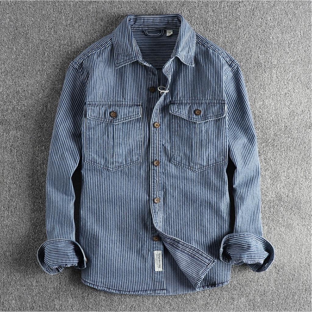 ✨Áo sơ mi denim sọc phong cách Retro_Biker_Army