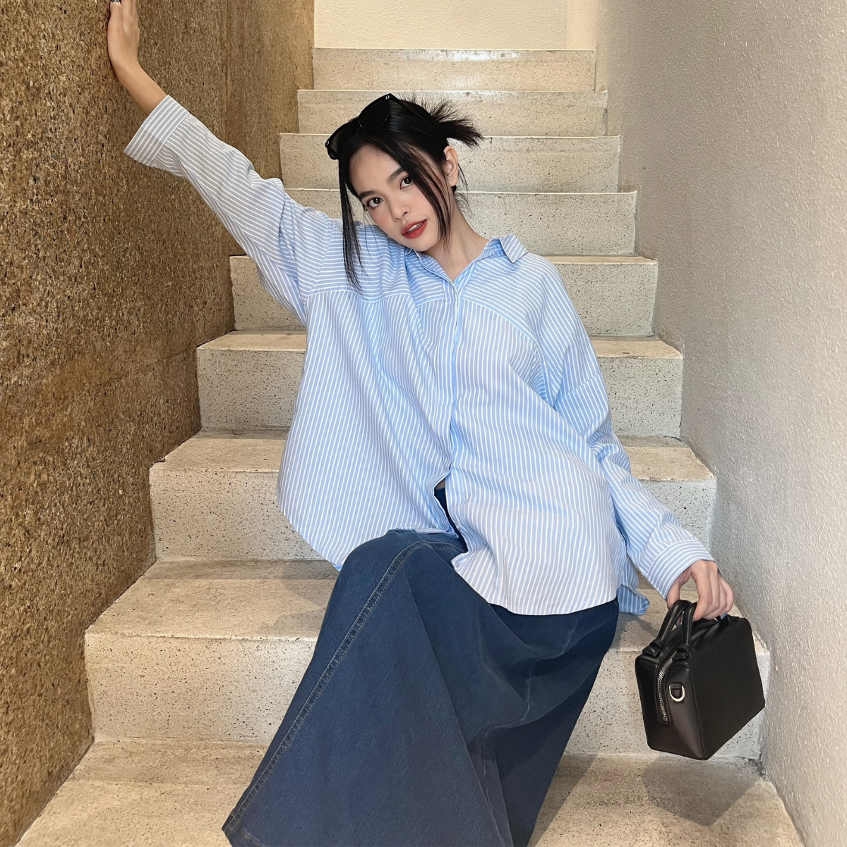✨Áo sơ mi kẻ sọc cách điệu hai bên Aiko Miều Est.2013