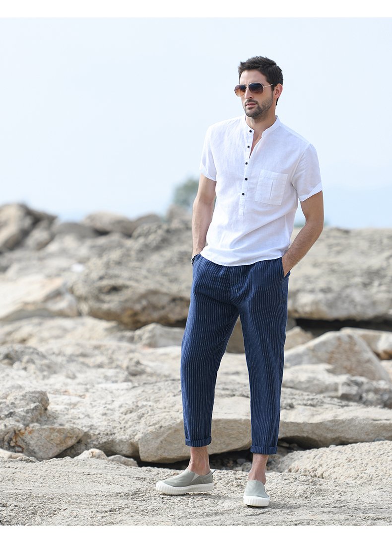 ✨Áo sơ mi nam ngắn tay cổ tàu, áo sơ mi linen, phong cách Hàn Quốc, trang nhã, lịch lãm