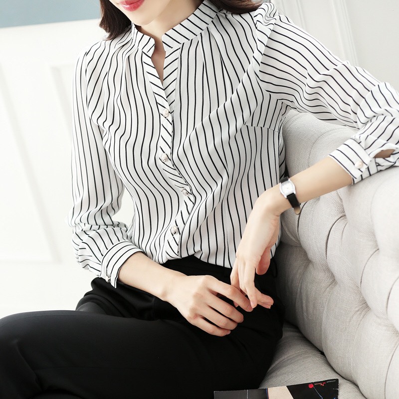 -Sơ mi nữ được thiết kế thanh nhã với kiểu áo form rộng trẻ trung