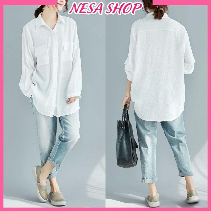 ✨Áo sơ mi nữ trắng dài tay, áo form rộng, chất liệu Đũi tơ mềm mịn, sơ mi nữ đẹp phong cách Hàn Quốc NeSa Shop AKH.47