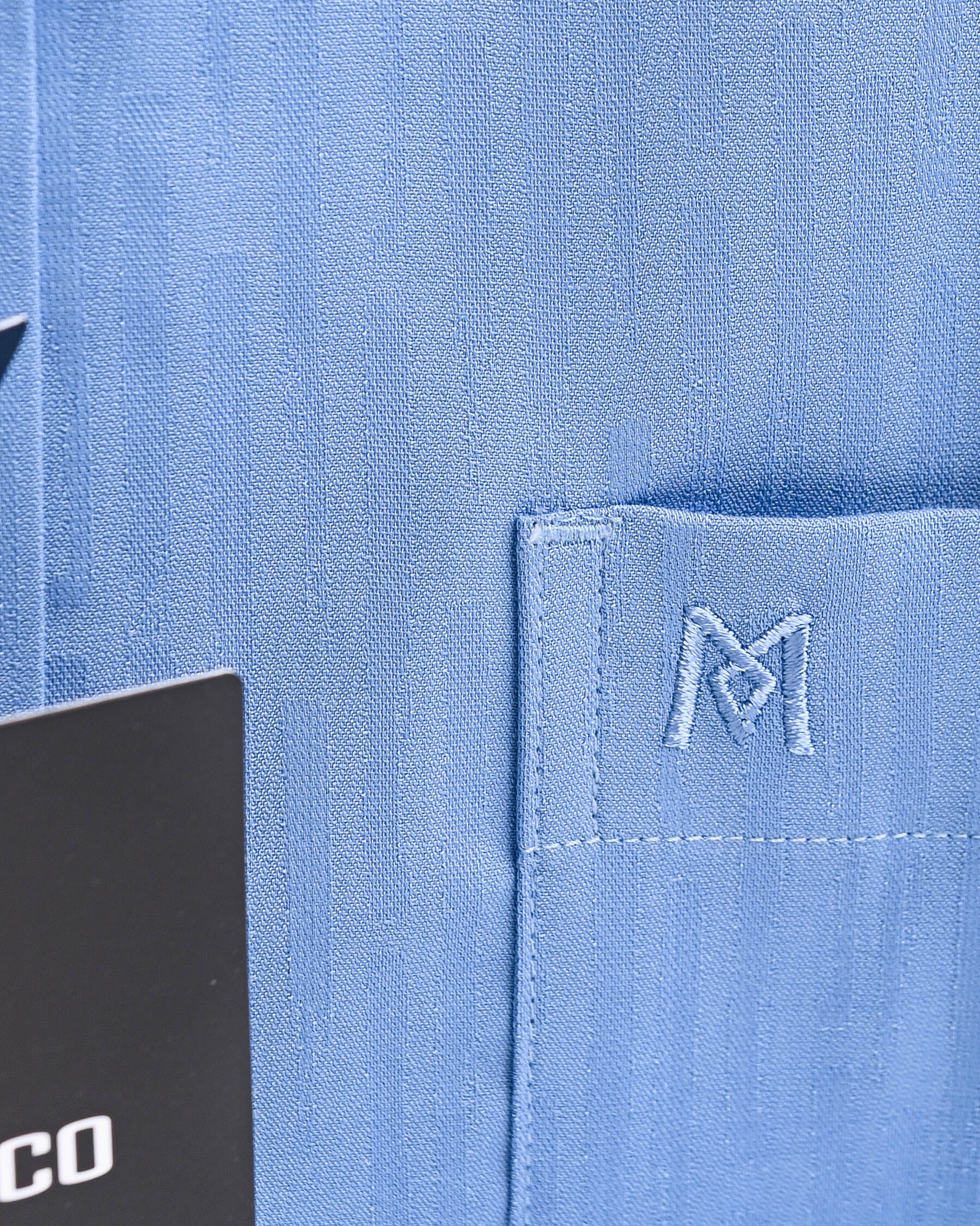 Mua tại Tiktok(V) Thông tin sản phẩm: Form Tailor, lai bầu Máu sắc:Blue. Chất liệu:49%Polyester-49%Rayon-2%Spandex. Sản phẩm may từ chất liệu mềm mịn, thấm hút mồ hôi tốt, thoáng mát. Có thể kết hợp cùng quần tây, quần shorts hoặc quần kaki cho đa dạng nhiều phong cách. Form Tailor, cổ sơ mi đứng dáng, xuông vừa thoải mái. Form áo tiêu chuẩn, rộng vừa phải, ko ôm sát cơ thể, bó nhẹ ở vùng eo và tay áo. Độ rộng vùng ngực và nách cũng sẽ fit hơn với cơ thể. Không quá rộng như form áo cổ điển. Nút Tor-sur-ton khắc logo đẹp mắt, phối trọn vẹn màu áo. logo thêu sắc nét trên túi áo.