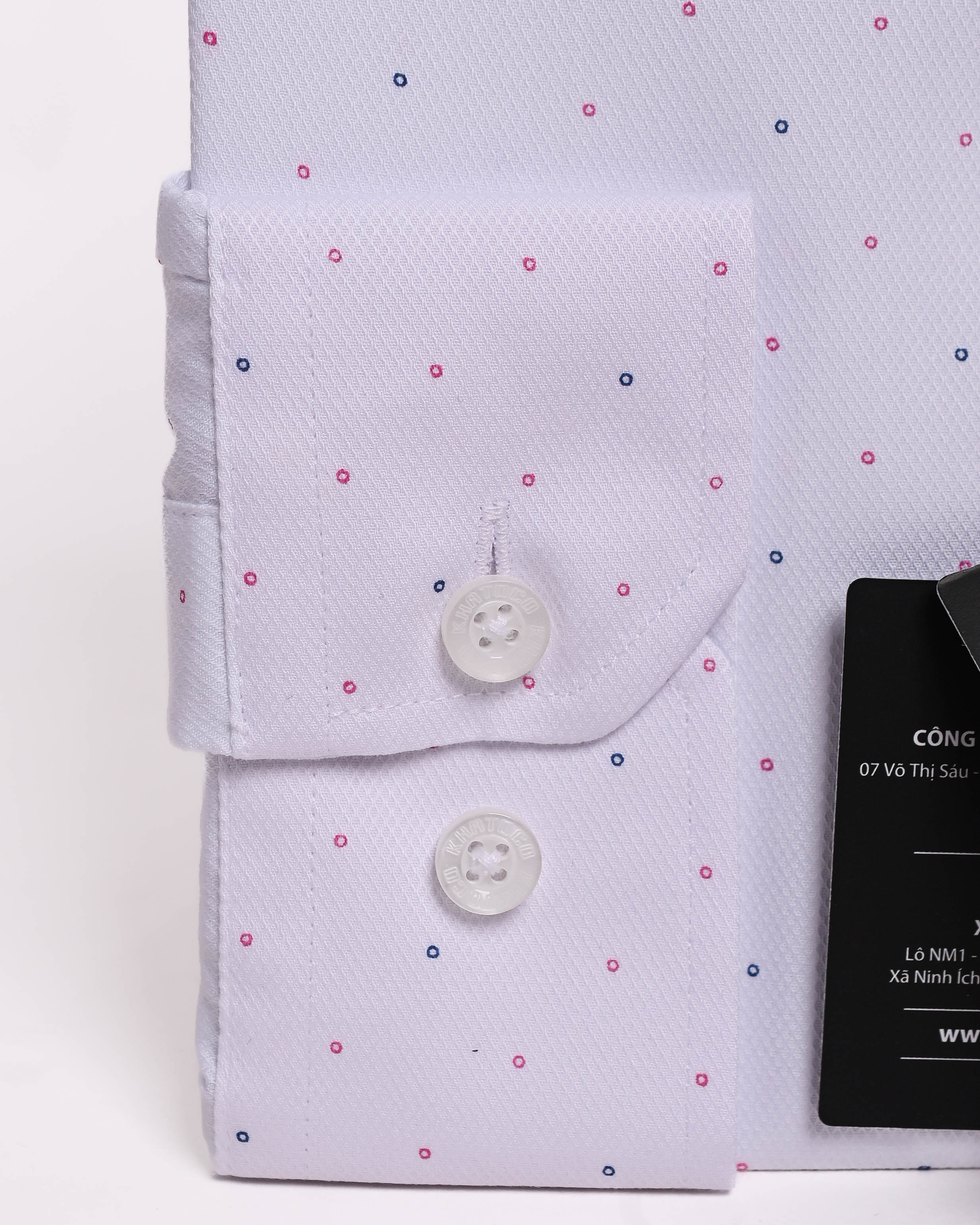 Áo sơ mi nam trung niên, Áo sơ mi nam công sở Anton, Áo sơ mi trắng dài tay trắng họa tiết chấm bi Y302 Vải cotton thoáng mát, thấm hút tốt, mềm mịn không