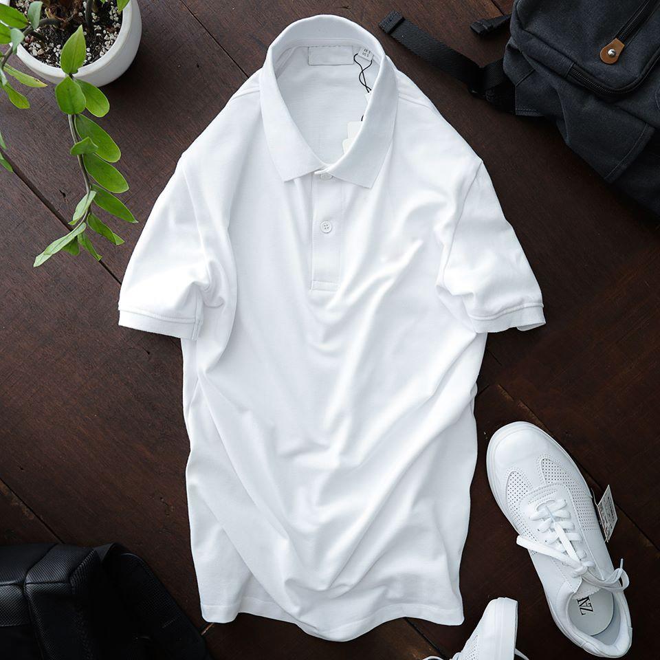 ✨Áo Thun Cổ Bẻ Cá Sấu 4 Chiều Màu Trắng