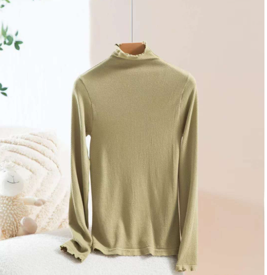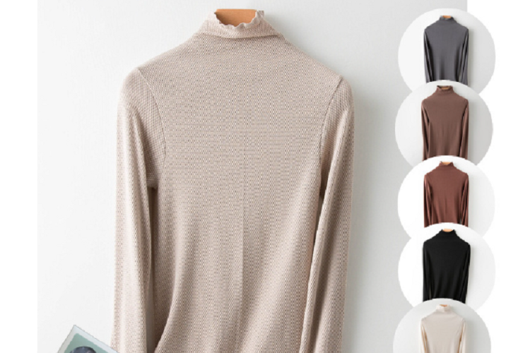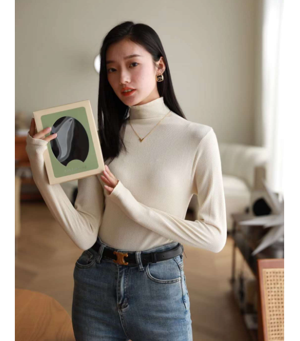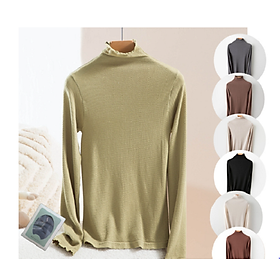Áo giữ nhiệt nữ cổ lọ cao, sợi len mềm mại, đàn hồi tốt, ôm lấy thân hình, rất gợi cảm và nữ tính.