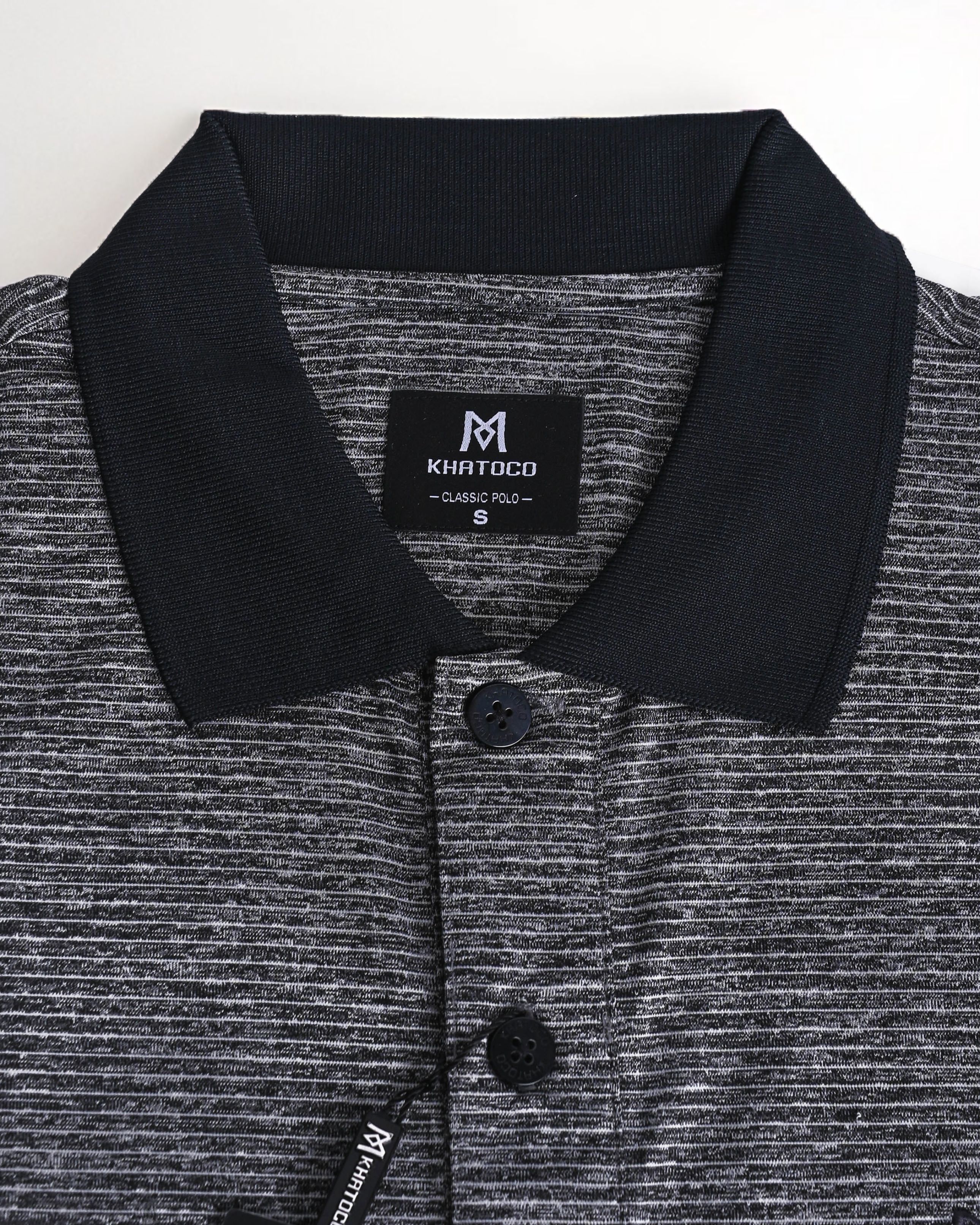 Thành phần 95%CVC 5%Spandex Form Regular fit Mô tả Áo thun Polo melange dệt chìm xương cá không túi đen bích NATMMNMCSR210114N Mã sản phẩm NATMMNMCSR210114N