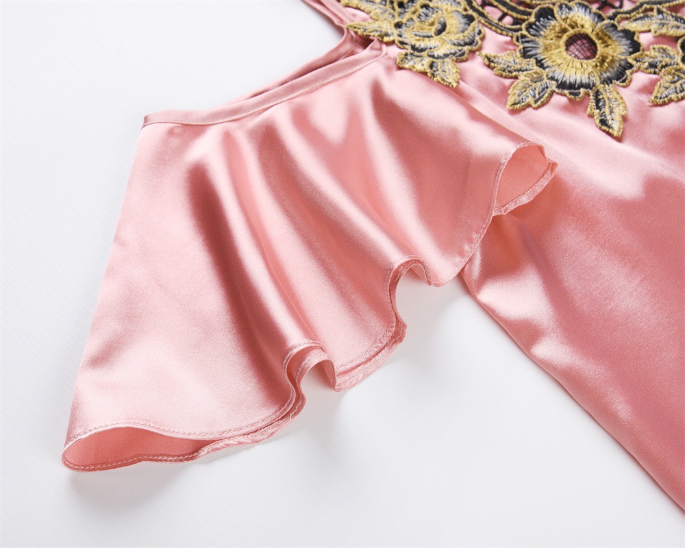 Tên vải: lụa nhân tạo + ren