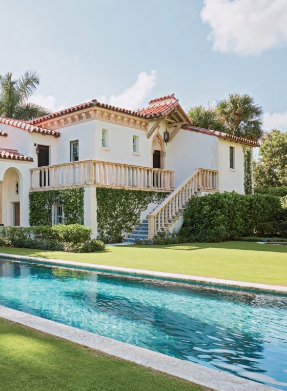 Vẻ đẹp và sự sang trọng hòa quyện với sự xa hoa trong phong cách Palm Beach của kiến ​​trúc sư Marion Sims Wyeth, một kiểu thiết kế nhà lấy những đồ đạc tiêu chuẩn của thiên đường — cây cọ, đài phun nước rực rỡ, hồ bơi và khu vườn lấp lánh, tầm nhìn ra biển — và kết hợp chúng với một chút của sự kỳ lạ — ban công hoặc ô cửa theo phong cách Moorish, cổng vòm kiểu Venice, sân huyền ảo theo phong cách Tây Ban Nha và cầu thang xoắn ốc bằng đá và sắt.