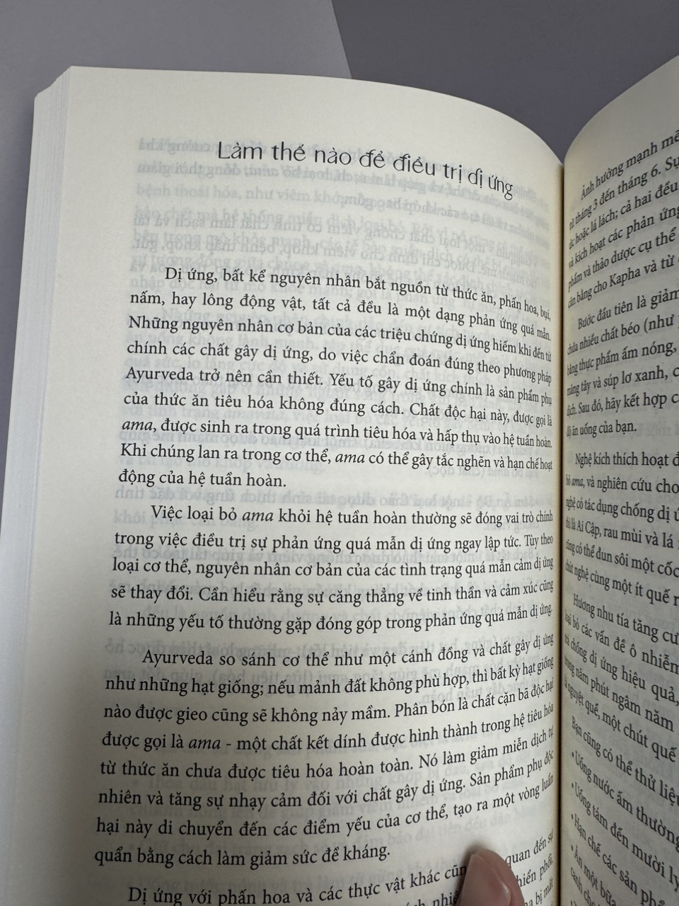 Lý do tại sao một số sự mất cân bằng thường dẫn đến bệnh tật và chỉ cho bạn cách khôi phục cơ thể về trật tự tự nhiên. Bạn sẽ tìm hiểu những phương thuốc Ayurvedic truyền thống nào - trà thảo mộc và công thức, tinh dầu, thiền, yoga - giúp giảm bớt nhiều tình trạng bệnh, chẳng hạn như các triệu chứng cảm lạnh và cúm, đau đầu, đau răng, viêm họng, cholesterol cao, các vấn đề về thị lực , lo lắng và trầm cảm. Cuốn sách cũng chỉ cho bạn cách áp dụng chế độ ăn kiêng và các kỹ thuật Ayurvedic cụ thể để ngăn ngừa bệnh tật trong tương lai và thúc đẩy ý thức cơ thể cũng như lối sống lành mạnh.