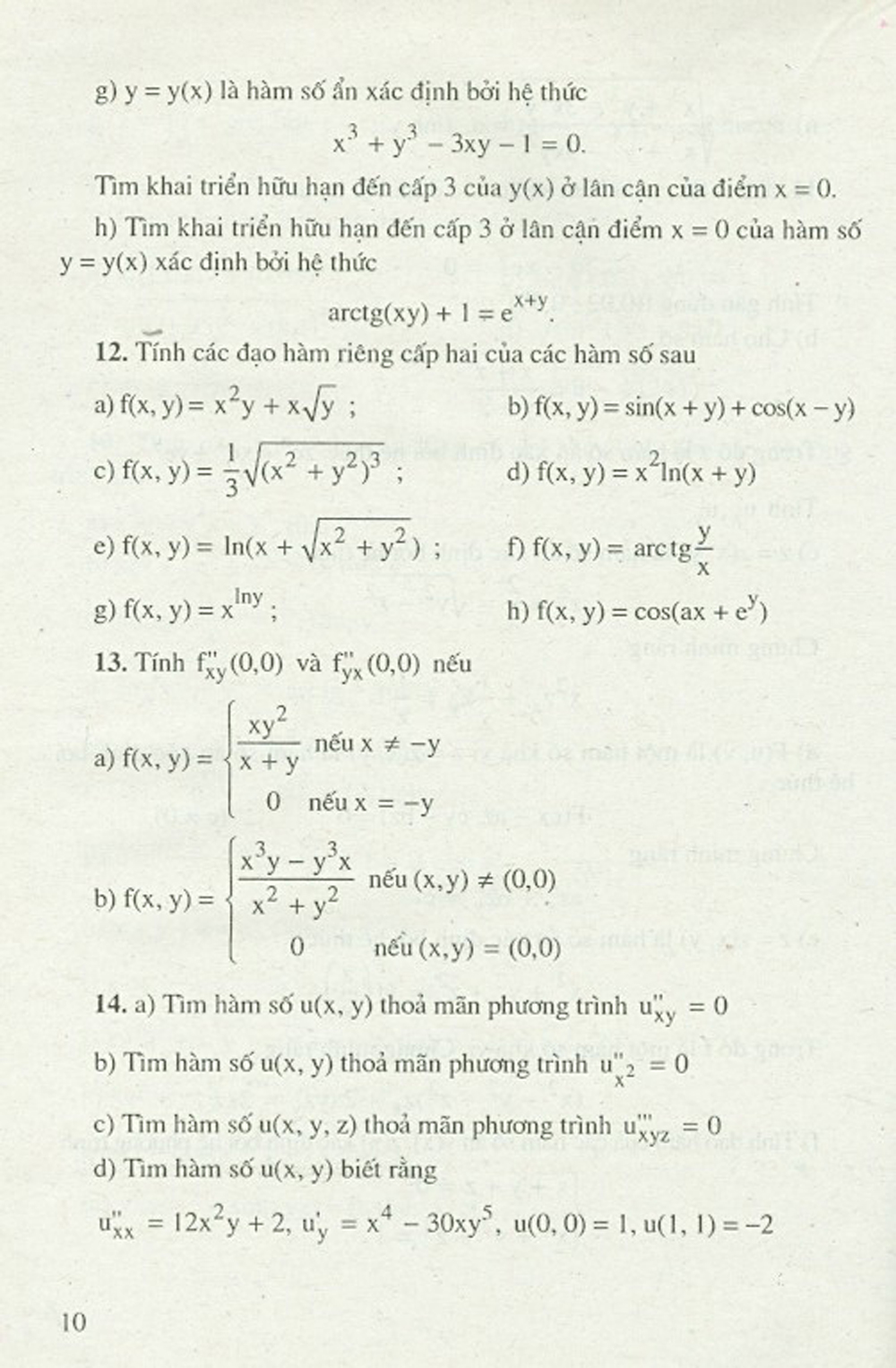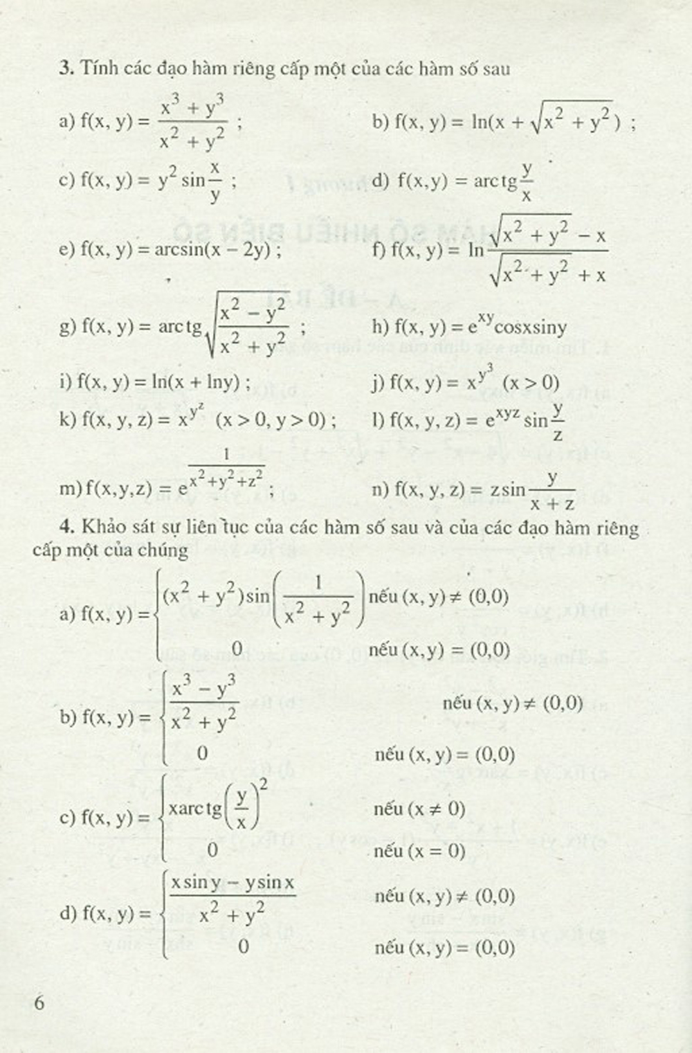 Giải tích 3.1 Bài tập tính Đạo hàm riêng bằng định nghĩa và quy tắc - Hàm nhiều biến
