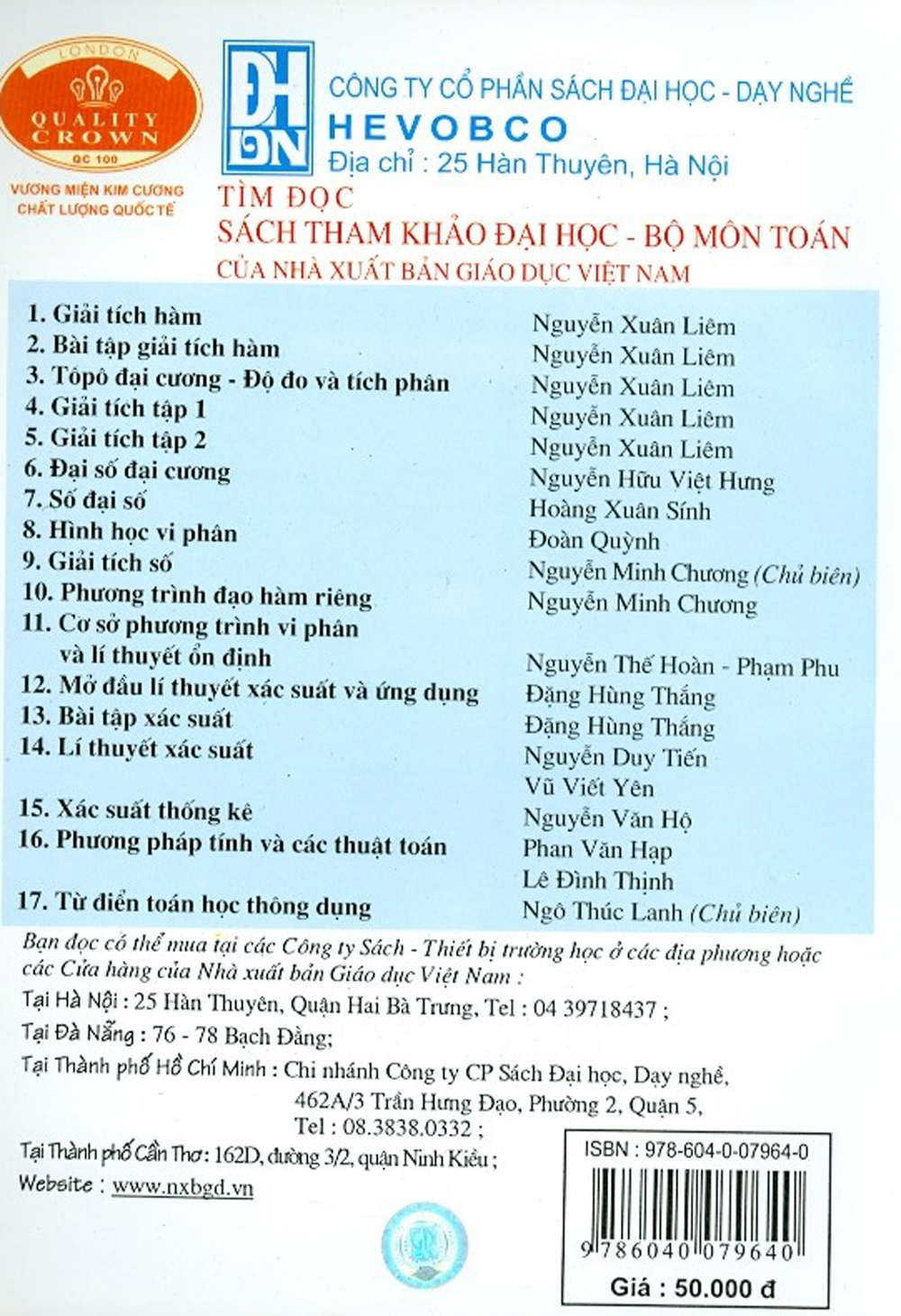Tên đề tài: Sách - Combo Toán Học Cao Cấp Tập 1 + 2 + 3 Tác giả: Nhiều tác giả Nhà xuất bản: Nhà Xuất Bản Giáo Dục Việt Nam Đơn vị phát hành: