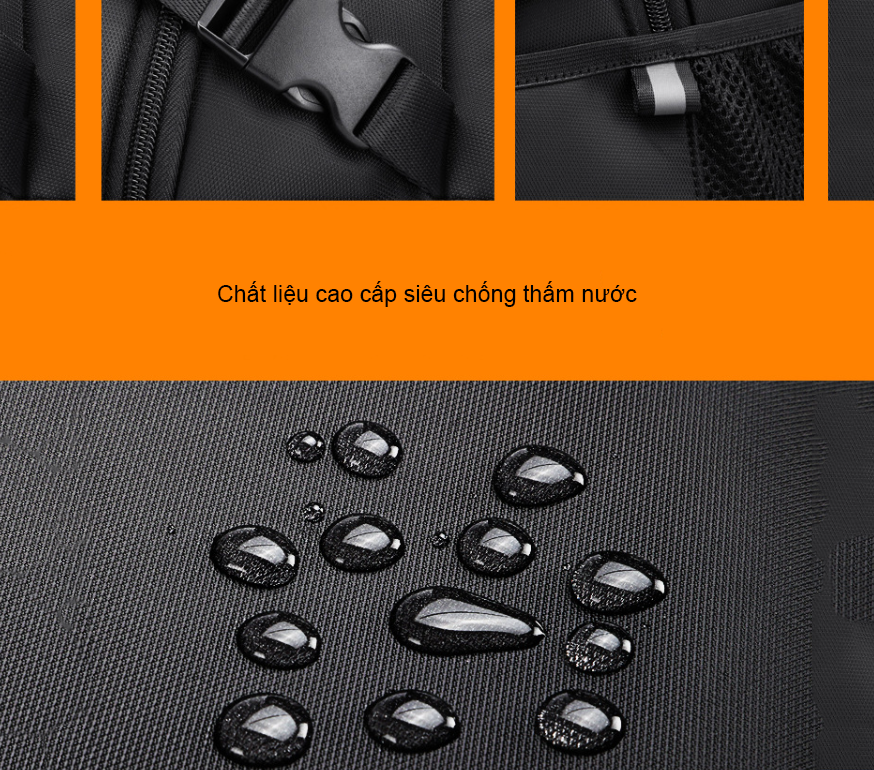 - Chất liệu vải Polyester cao cấp được mã hóa siêu chống thấm nước - Chức năng: Không thấm nước, thoáng khí, chống mài mòn, chống sốc, chống rạch - Balo có thiết kế nhiều