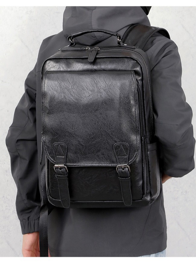 Chiếc Balo laptop nam nữ 15”, ba lô đi làm, đi học đựng máy tính 15inch ngăn trước khoá gài với thiết kế dáng đứng cùng chi tiết ngăn trước khoá gài phối da vân tạo