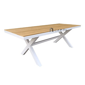Bàn ăn 1m8 sân vườn chân chéo TE2035-180A Nội thất Capta Bàn ăn tiệc sân thượng ngoài trời mặt gỗ nhựa chân nhôm sơn tĩnh điện