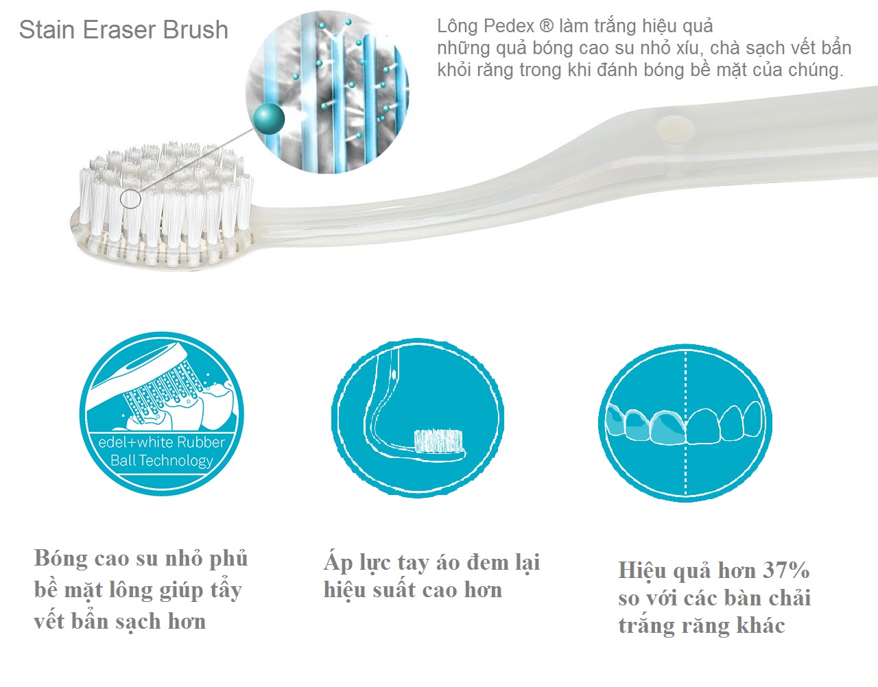 - Bàn chải đánh răng STAIN ERASER BRUSH đến từ thương hiệu Edelwhite Thụy Sĩ là chuẩn mực cho công nghệ nha khoa tiên tiến.
