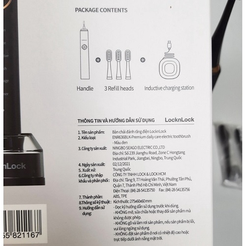 0827788333 Bàn chải đánh răng điện tần số rung 42000 lần/phút LocknLock ENR636BLK