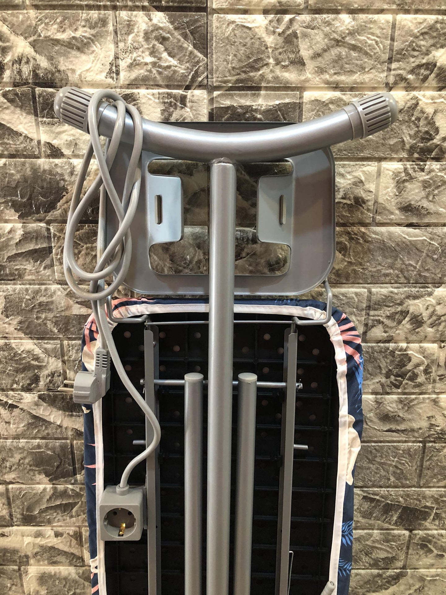 Khung kim loại chắc chắn Khung bằng kim loại, chịu lực tốt và có độ bền cao. Mặt bàn để ủi được làm bằng ván ép chất lượng, đủ độ cứng nhưng vẫn gọn nhẹ