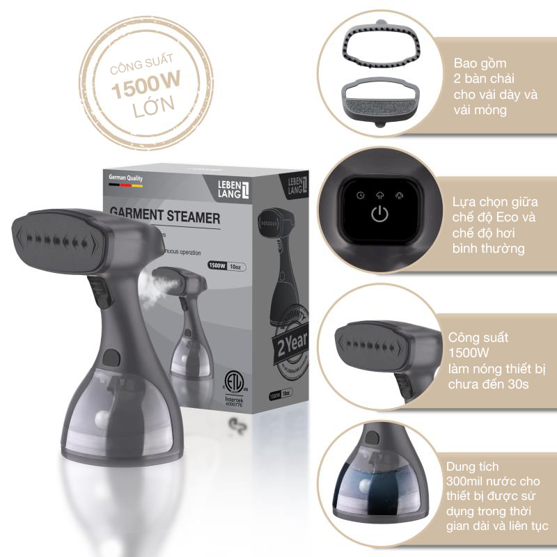 ✨Bàn là hơi nước cầm tay Lebenlang công suất 1500W, dung tích 300ml model LBD528 - hàng chính hãng